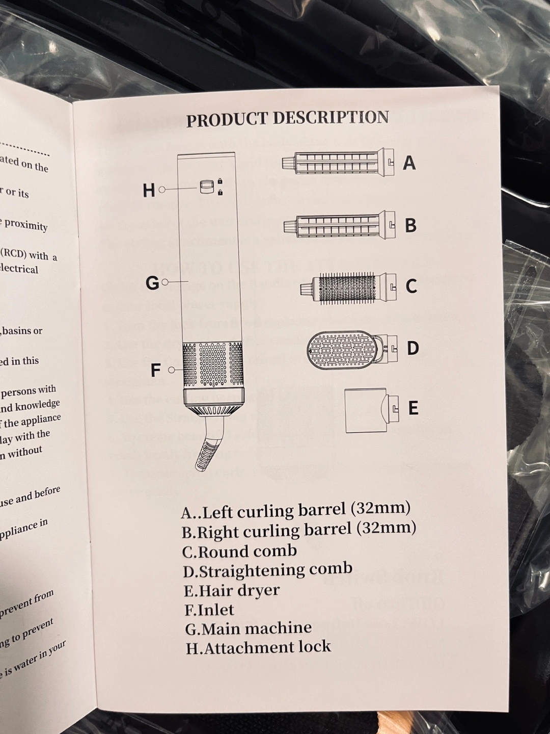 The 5 in 1 styling combo includes various attachments to achieve different hairstyles. Includes a main machine, hair dryer, straightening comb, round comb, and curling barrels.