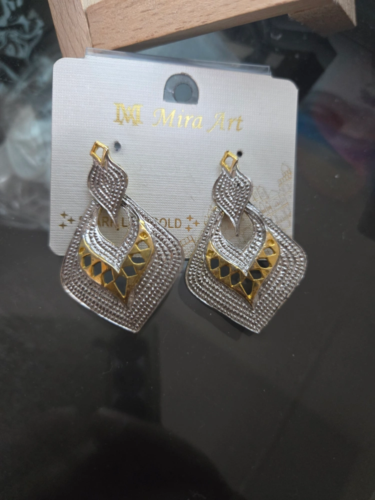 Earrings with an interesting two-tone design. The earrings have a unique, eye-catching shape. Wearing these earrings will bring a bit of beauty to your day.