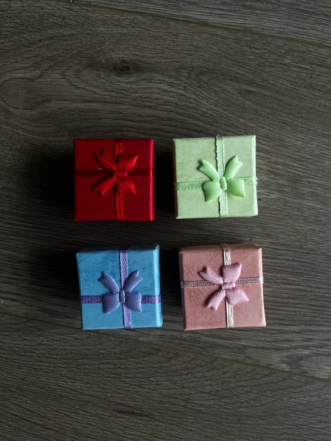 Small, square boxes. Decorated with bows. Perfect for adding a personal touch to any gift you're giving. $5 for each