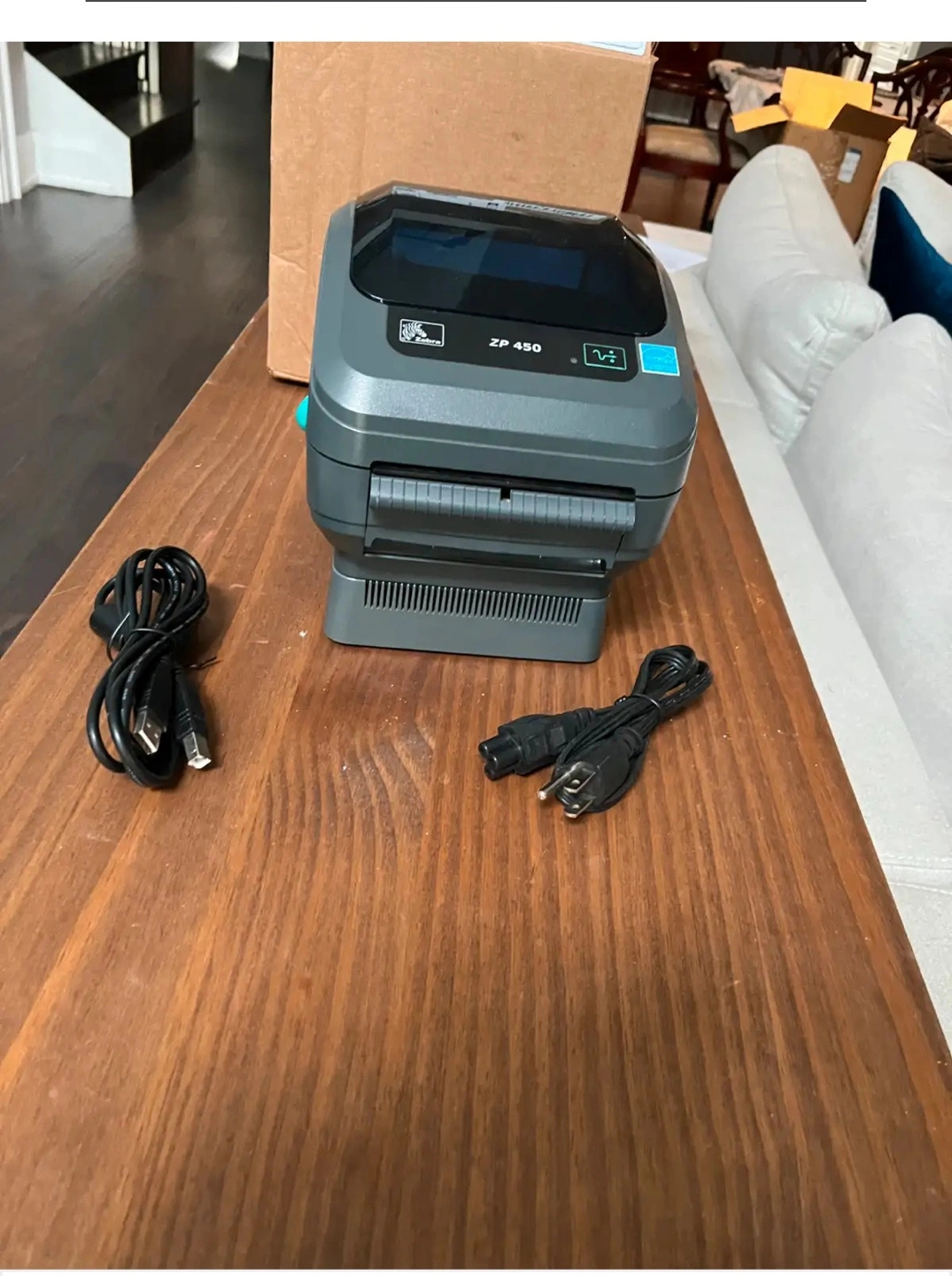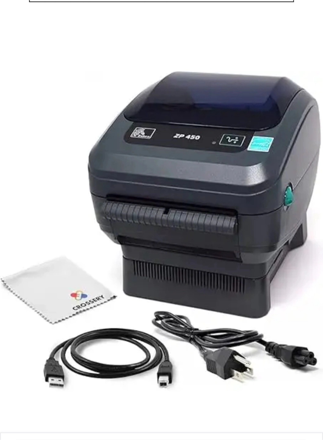 Easy Installation - Simply plugin, download software, and start printing! Software is JetSet Label and is simple to use with a drag and drop interface. Specifically designed for UPS Worldship Connectivity- Parallel (IEEE 1284), Serial (RS-232C), USB 1.0/1.1 Platform Compatibility - Designed Specifically for UPS WorldShip. You can easily generate labels and you can directly integrate with SQL, Oracle, as well as CSV formats such as Excel and Access. Clear, Quality Prints- Max Resolution 203 DPI, the perfect thermal printer for beginner small businesses.. High-Speed Printing - The Zebra ZP450 Direct Thermal Label Printer is designed for efficiency with impressive printing speeds up to 5" (152 mm) per second, which means it prints one 4×6” shipping label in 1.2 seconds Cost-Effective Label Printer - With its thermal printing technology, the Zebra ZP450 eliminates the need for expensive ink cartridges Compact Design - The Zebra ZP450 thermal printer is a small, compact desktop label printer that fits comfortably on any desktop, perfect for small workspaces. Made for UPS Labels - The ZP450 barcode shipping label printer was designed specifically to print UPS Wordship thermal shipping labels. It also prints USPS 2-D data matrix stamps. Also great for Amazon FBA barcodes, Fedex labels and USPS labels. Plug-n-Play, Durable Printer - Renowned for its robust build, the Zebra ZP450 This item is new still in its shipping box, including the USB and power cables.