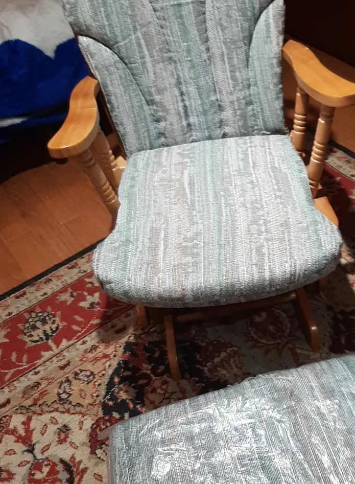 Featuring a patterned fabric. Has wooden armrests. Includes a matching footrest. It's the perfect chair to relax in after a long day.