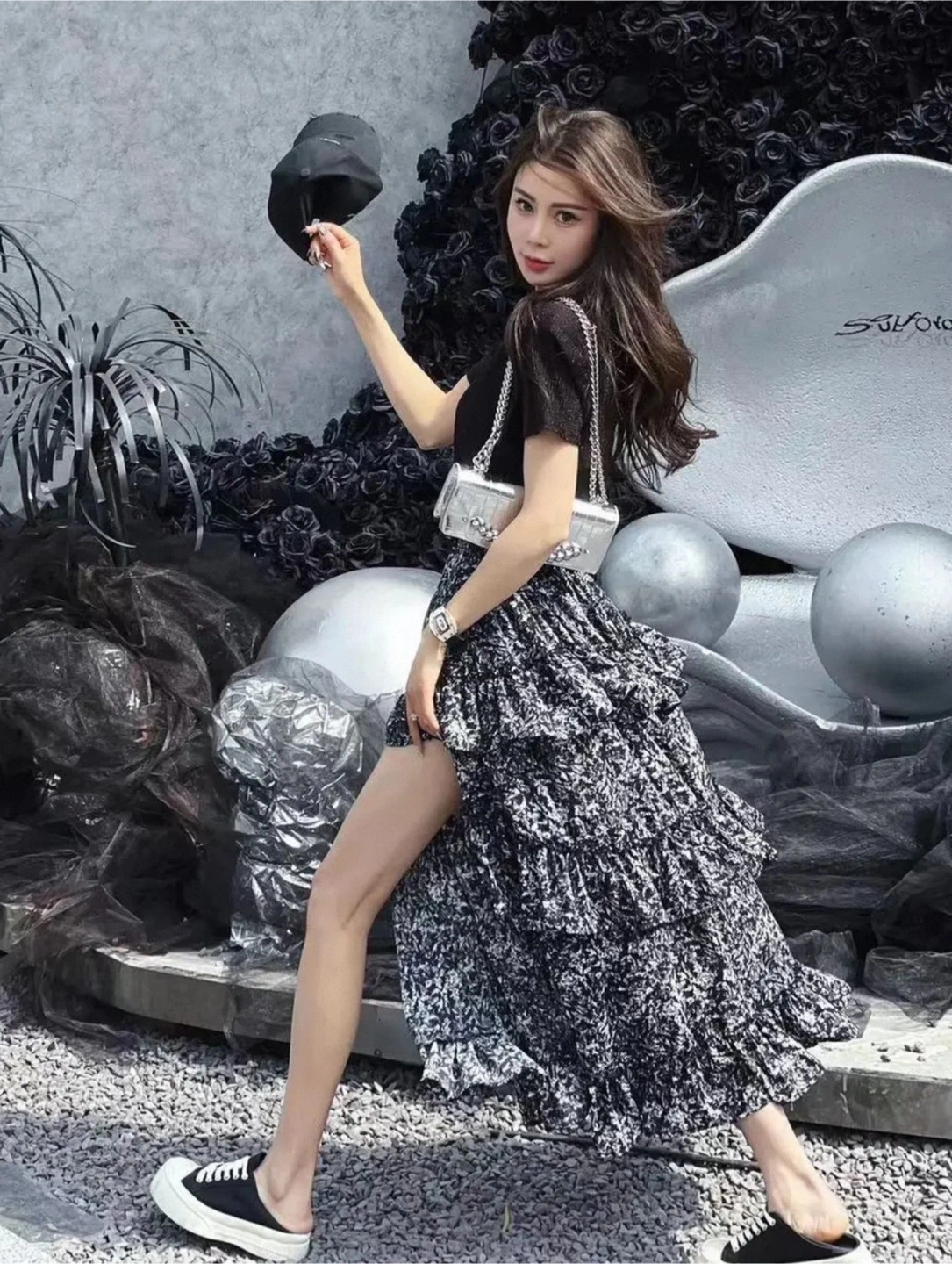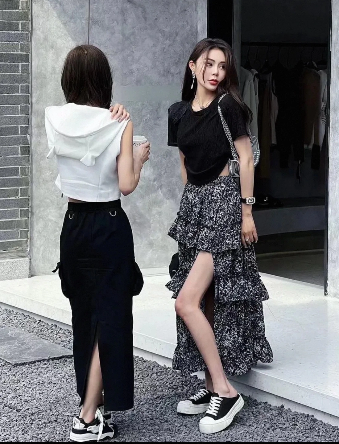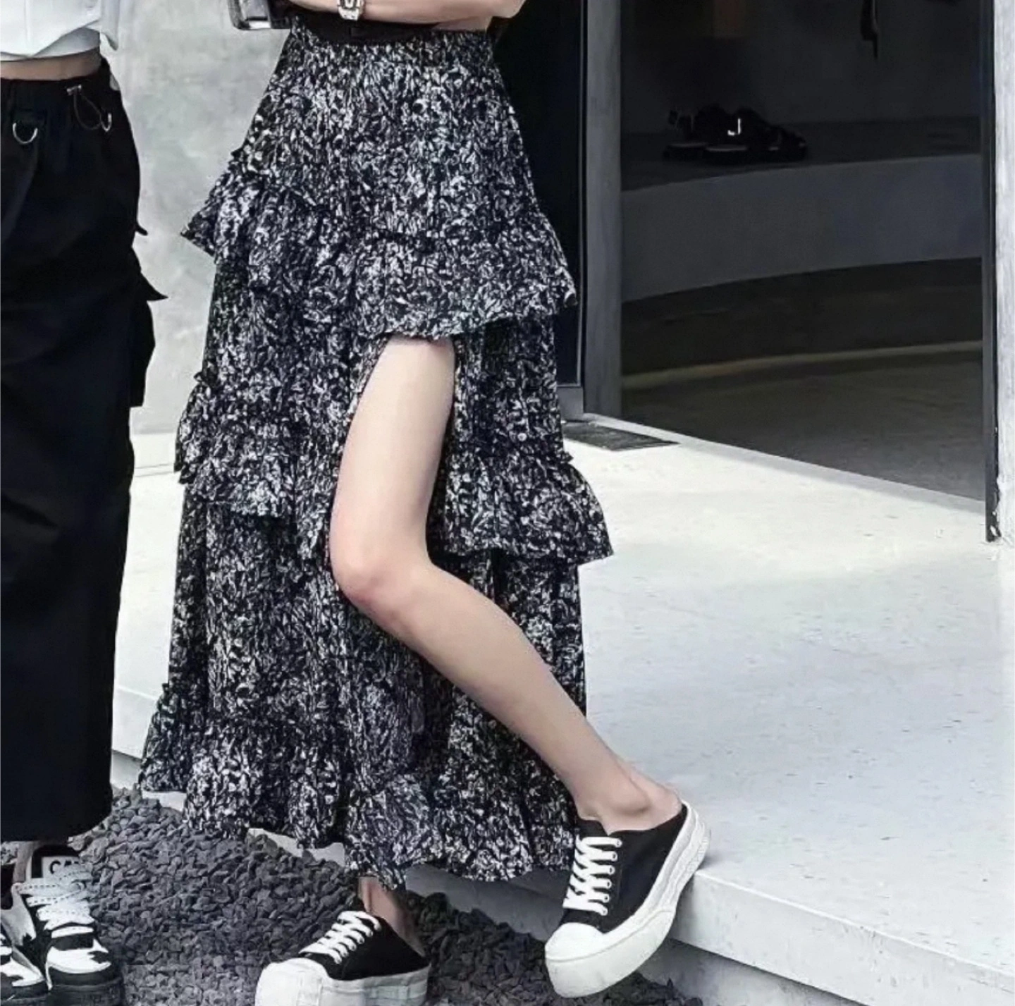 A striking, layered maxi skirt. Features a high leg slit. A perfect piece for a walk on the beach, or a relaxing day out with friends.