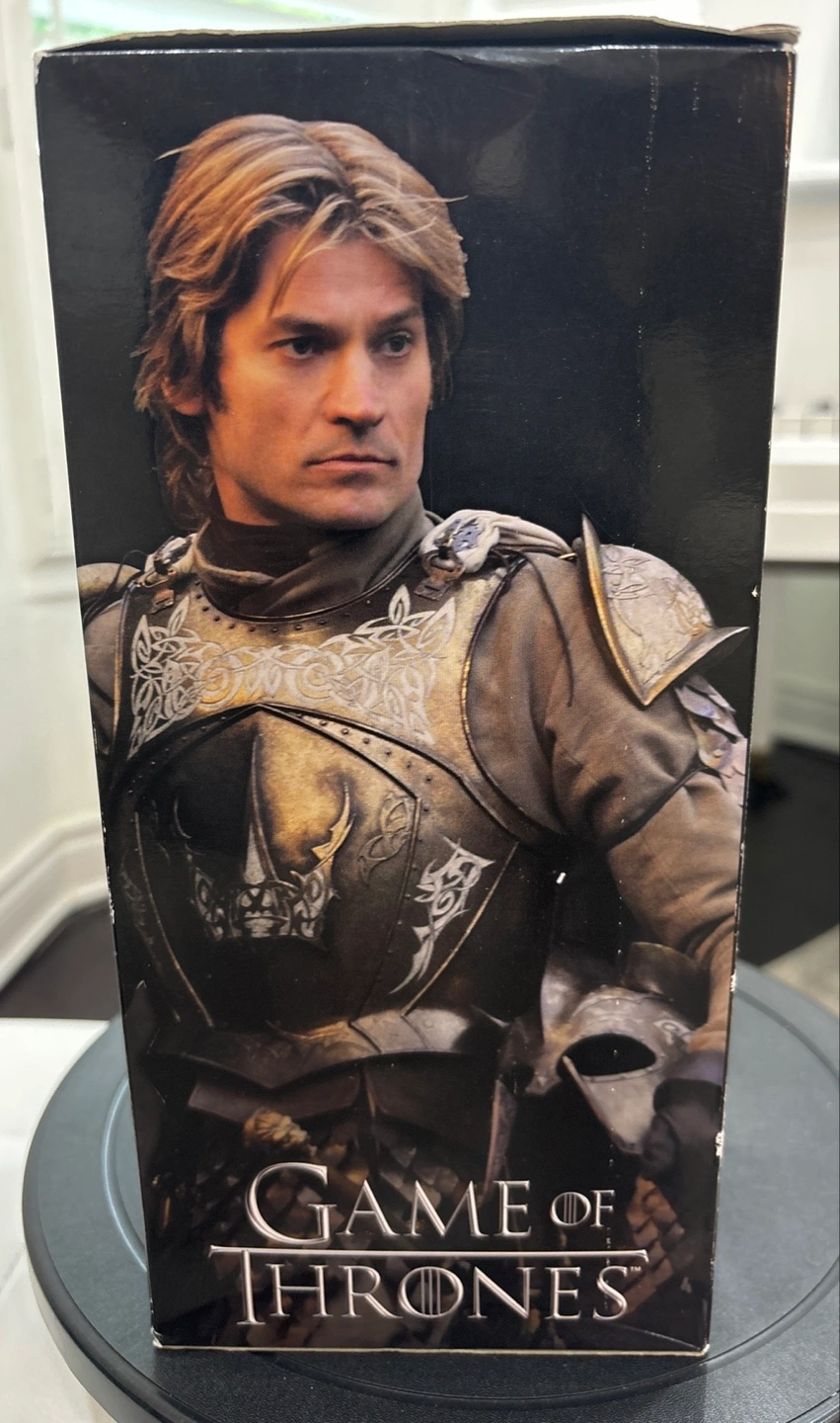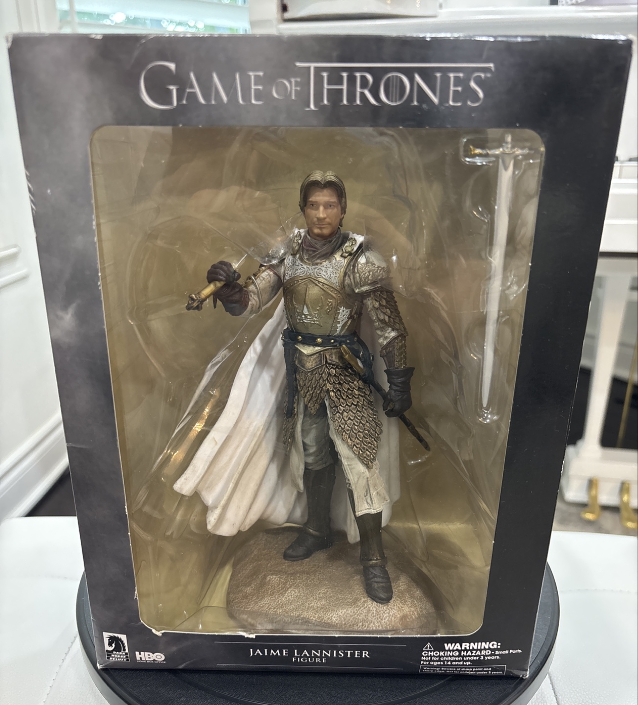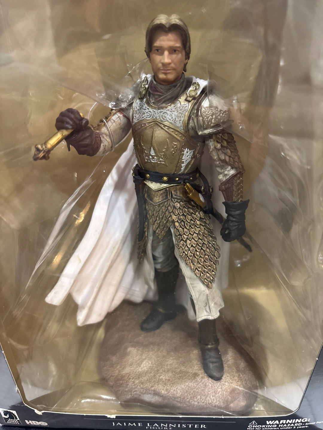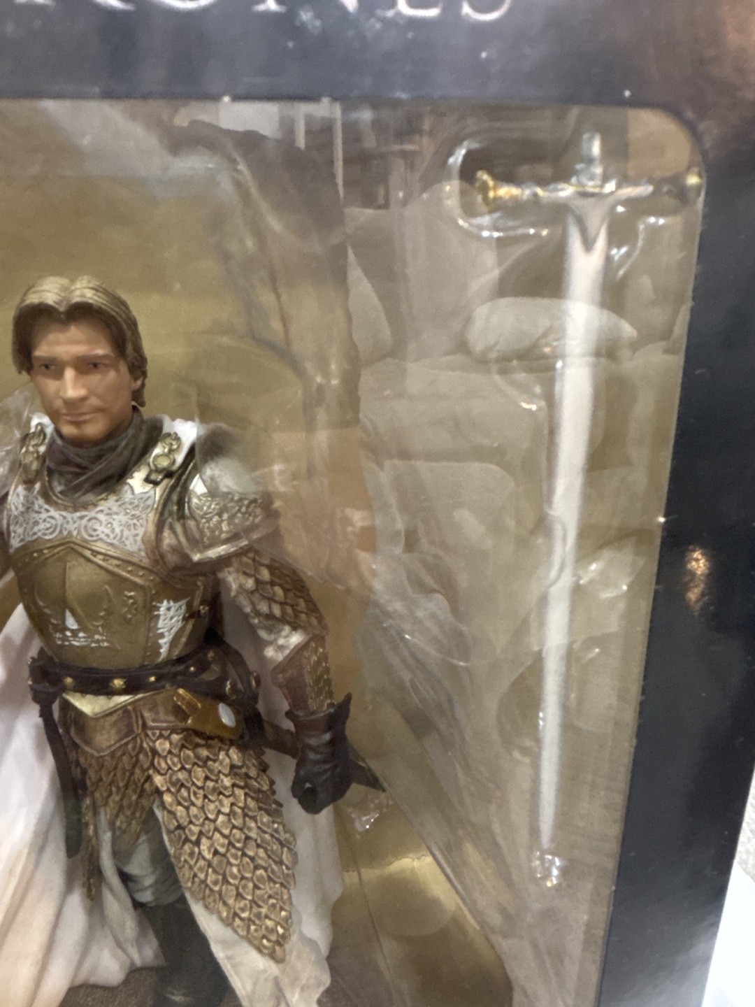 It's a figure of Jaime Lannister from Game of Thrones. The figure is still inside its original packaging. Such an awesome figure to have on display and enjoy looking at after a long day.