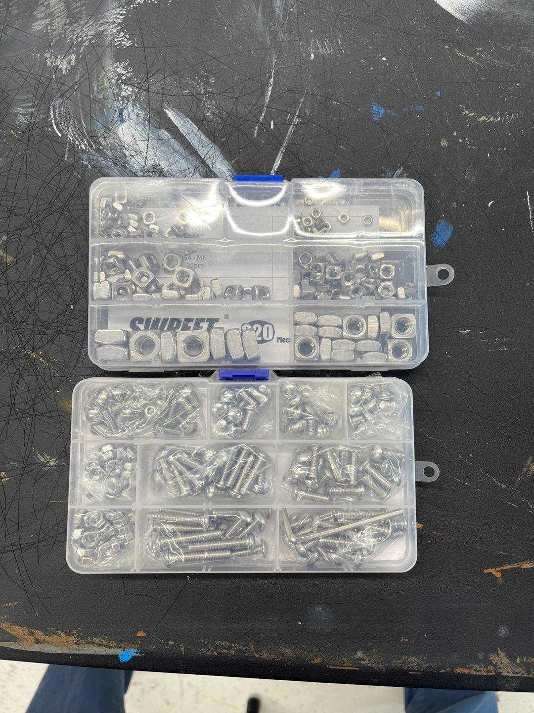 A couple of small cases. Cases filled with various sizes and types of fasteners. Some metal hardware. A very useful item for a variety of projects.
