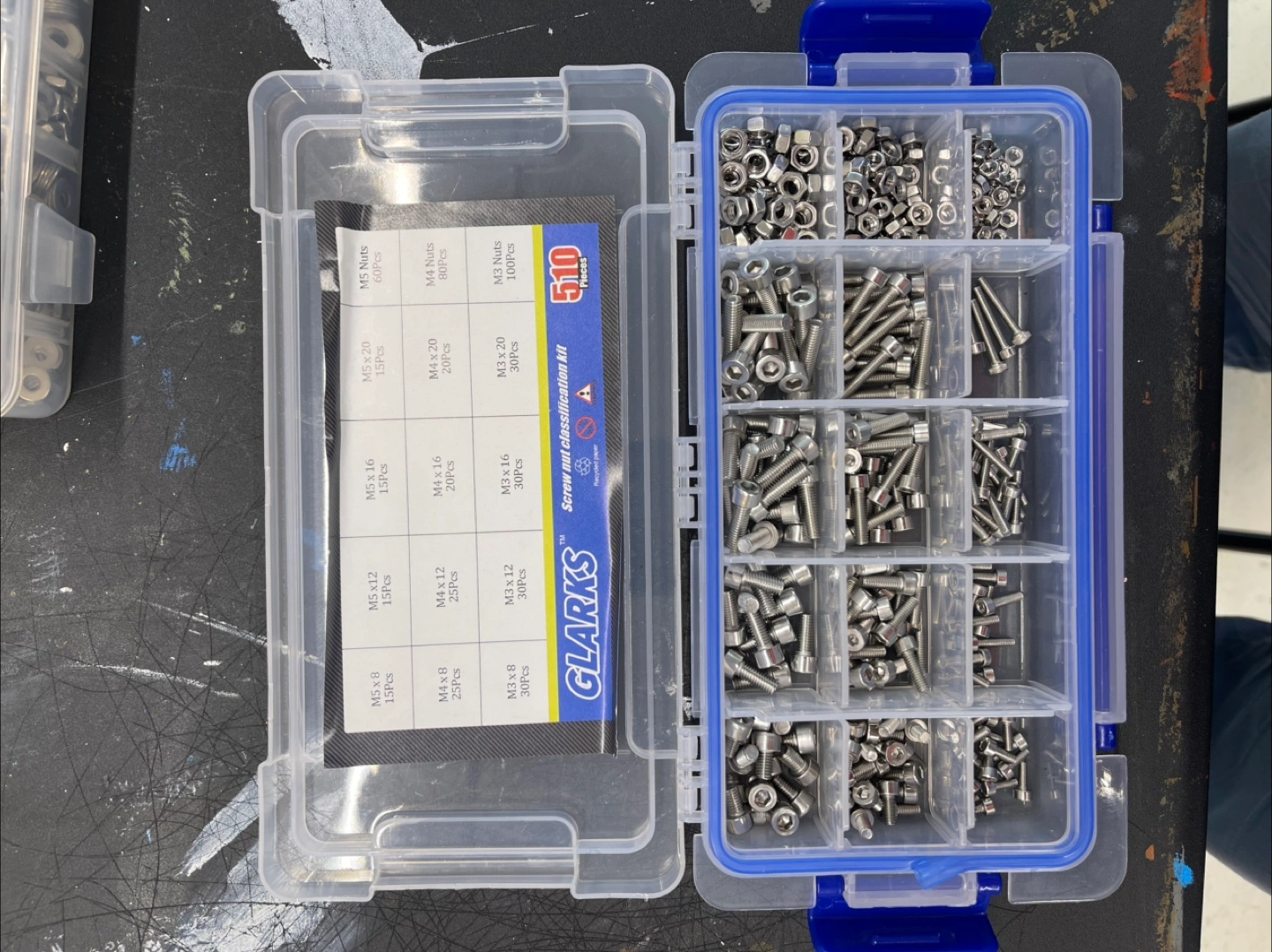 Clear plastic case with screw and nut assortment. Includes various sizes. A great way to keep all your hardware neatly organized.