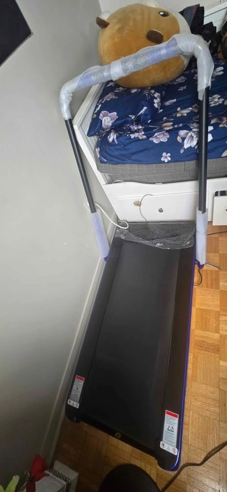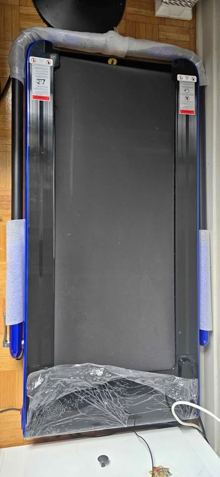 Foldable brand new treadmill with Bluetooth. The treadmill's surface belt requires proper tightening.