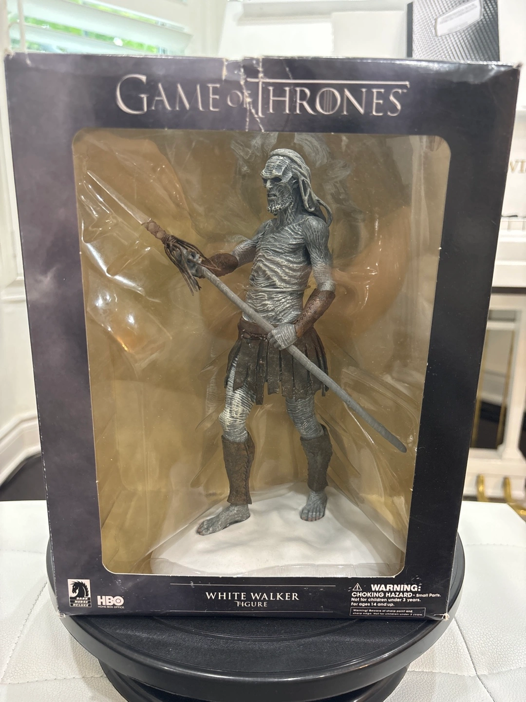The White Walker figure is displayed in its original box. Box is showing slight damage but figure inside unharmed. Brand new in box, never opened.