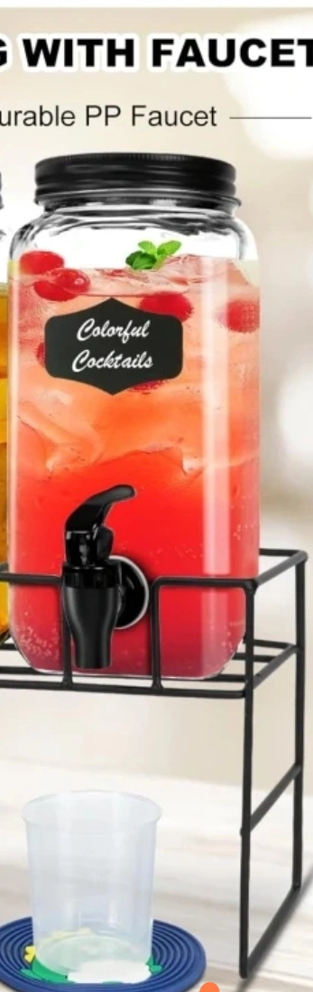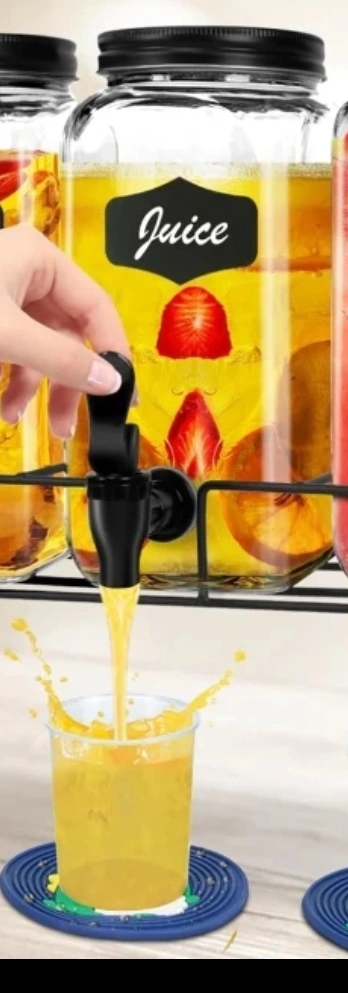 Glass beverage dispenser. leak proof Rectangular shape. . Great for keeping drinks handy and cool in the fridge.