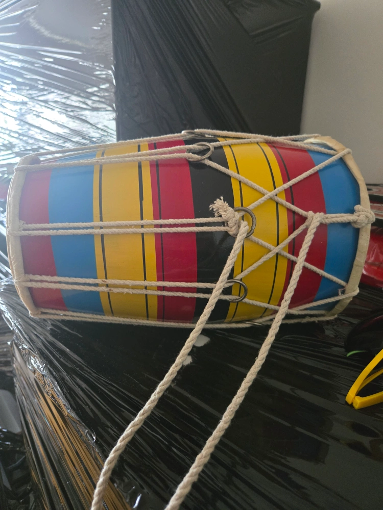 The drum looks colourful. It has a striped design. A rope is attached, possibly for carrying the drum. You can let the gentle sounds of this drum melt away any stress. faster pick up please in north york Victoria and rowena dr. moving sale
