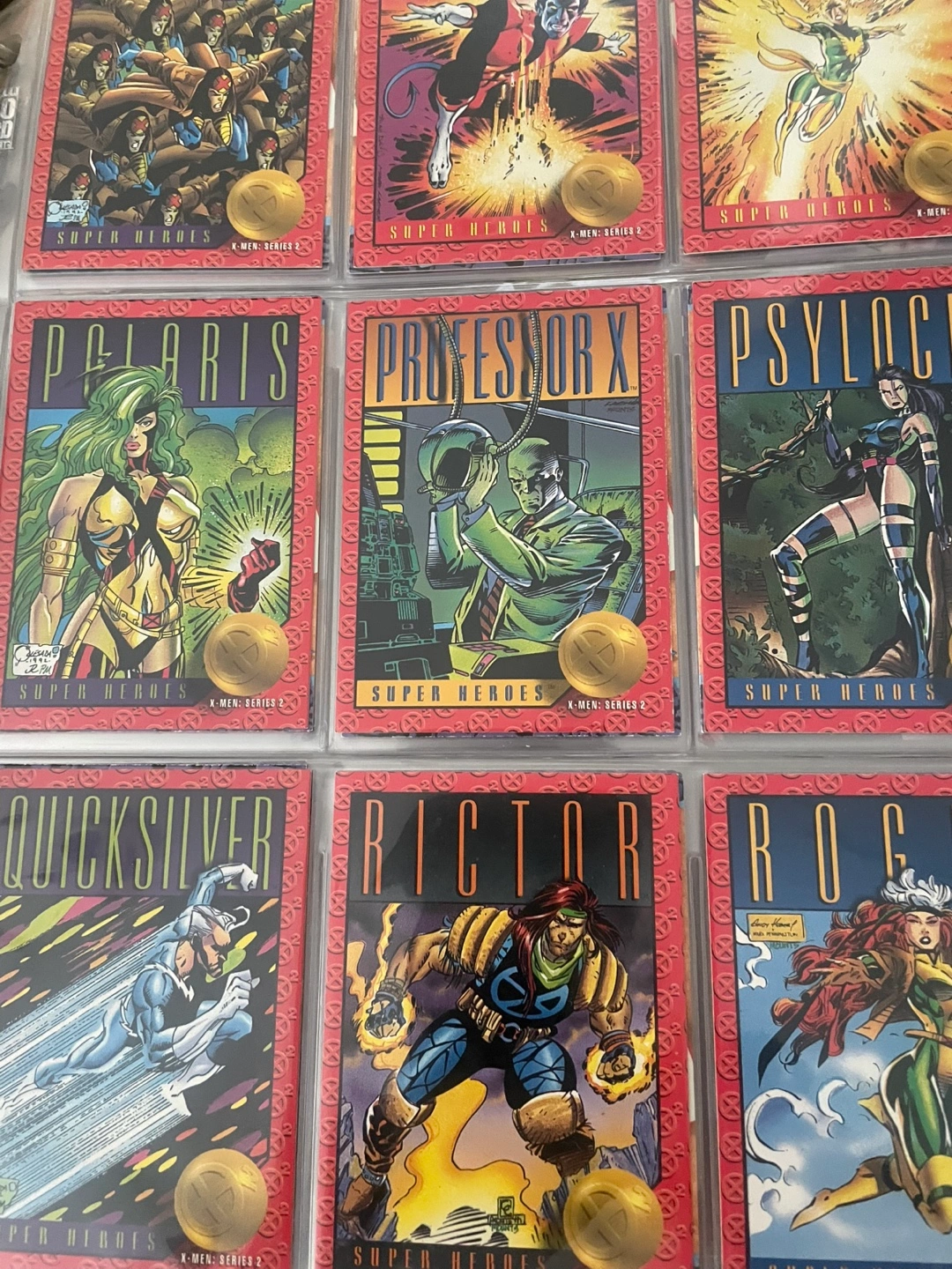 Over 500 Collection of X-Men trading cards. Featuring characters like Polaris, Professor X, and Psylocke. Enjoy these cards as a relaxing way to spend a quiet afternoon.