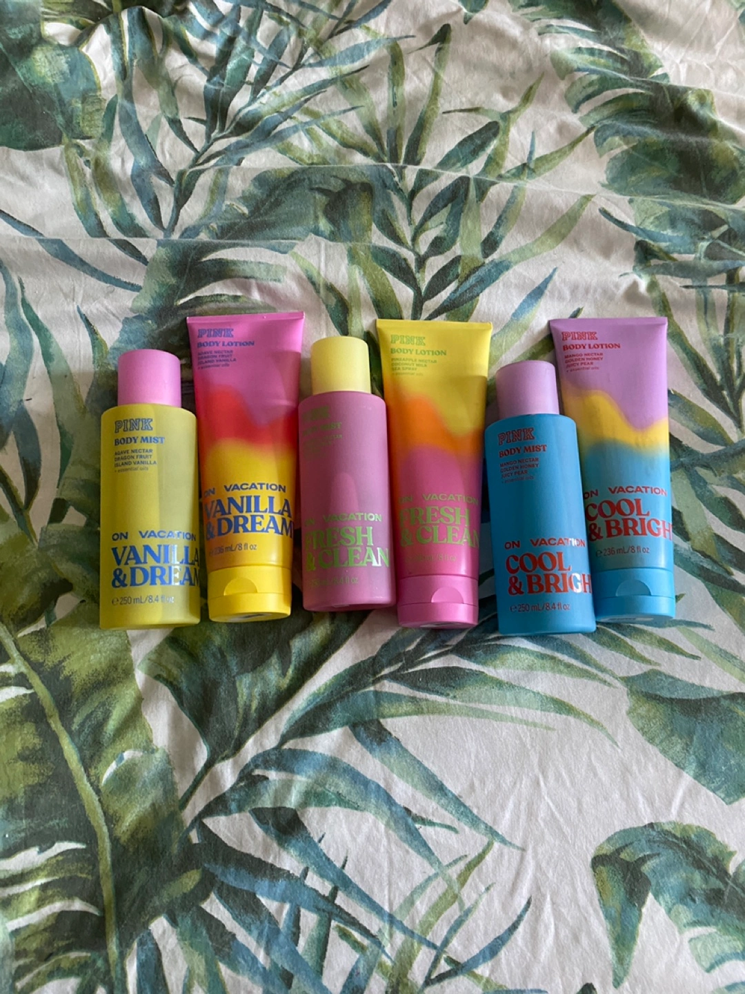 6pc Pink Vacation Body Mist and Lotion Set
