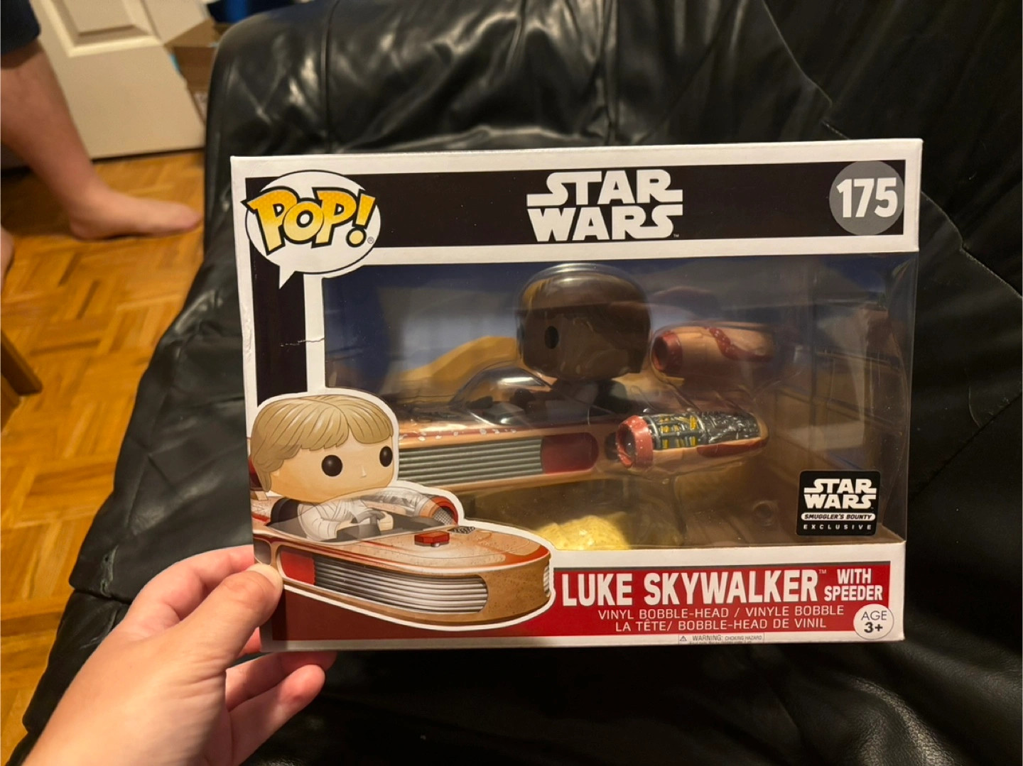 Selling a Funko Pop! Star Wars figure of Luke Skywalker with his Speeder. It's number 175 in the series. The box is included and it's suitable for ages 3+