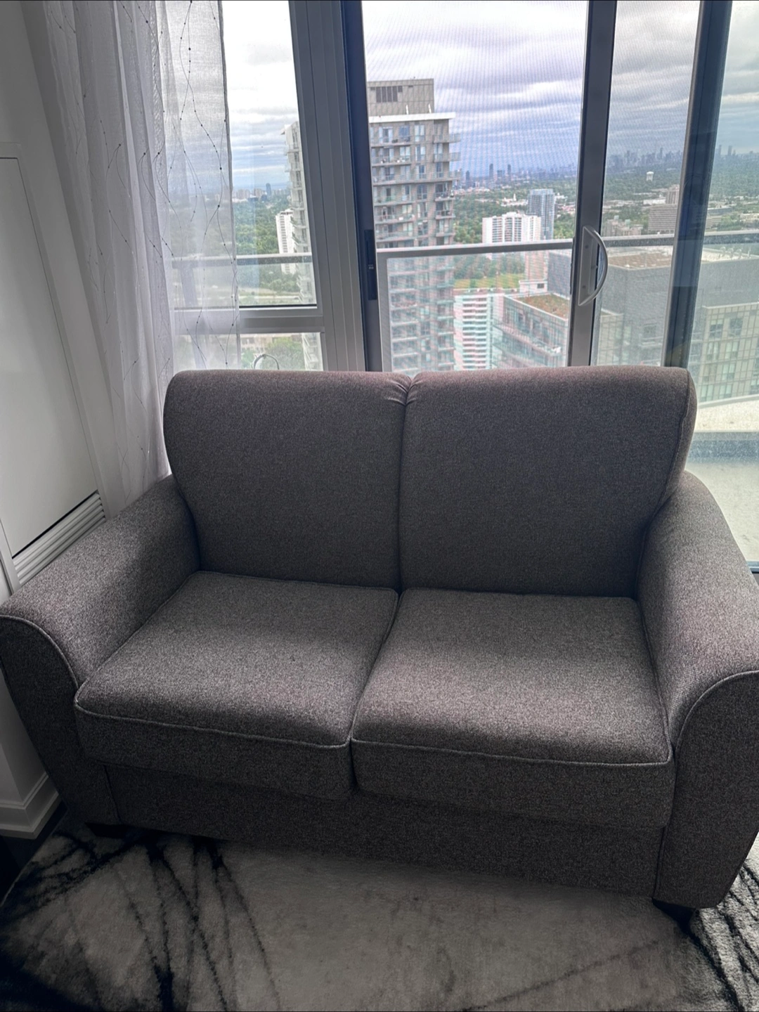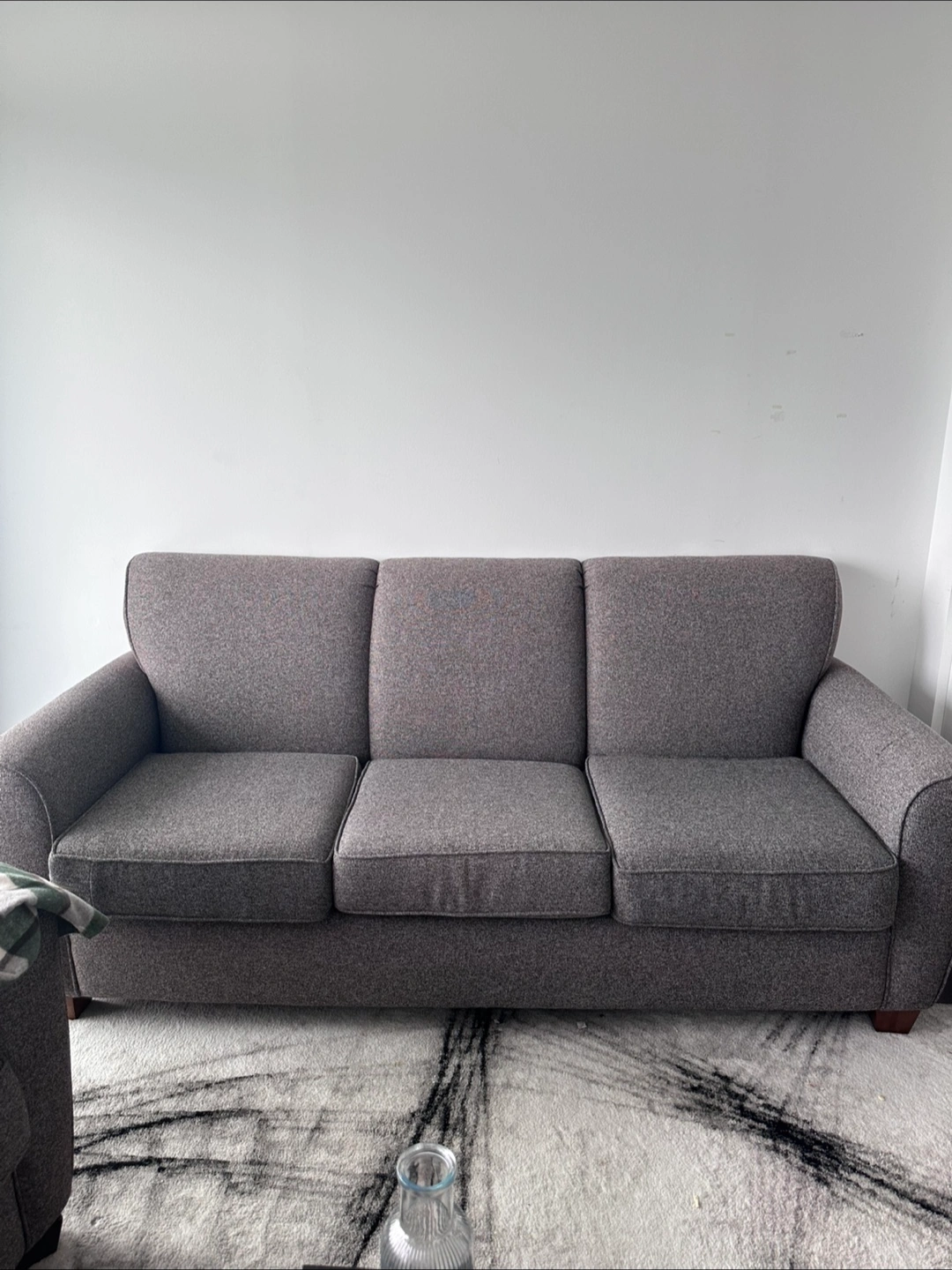 Selling a comfy grey sofa that's in great condition! It's a lovely piece for any living room. The material is durable and the colour is neutral, so it fits in with any decor. Perfect for lounging and relaxing after a long day! I sell it because I’m moving out.