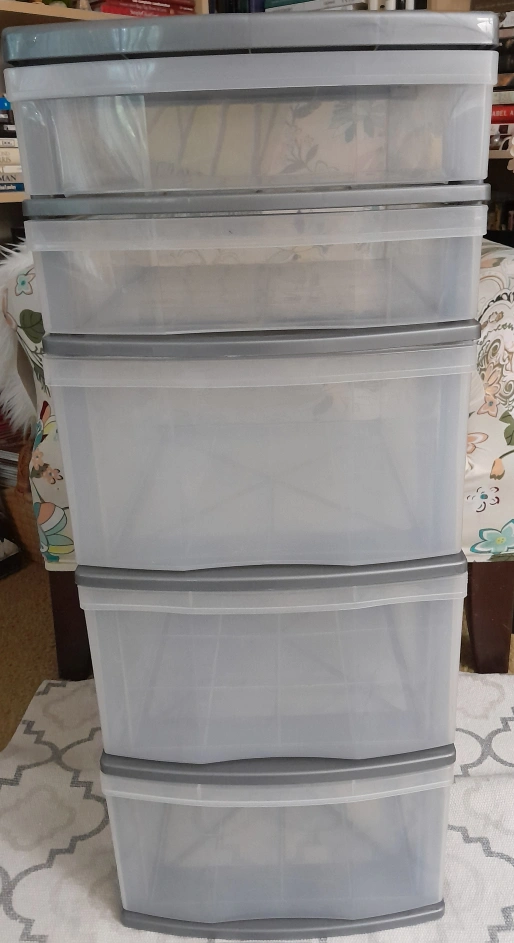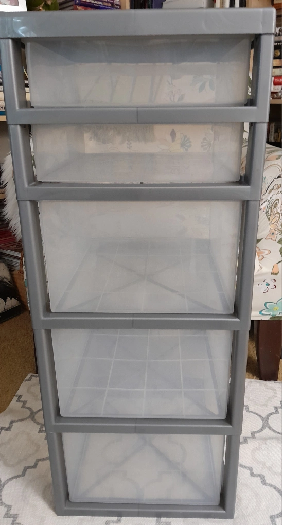 unit! It's in great shape and perfect for organizing your space. It holds a ton of stuff. The drawers are clear so you can easily see what's inside. Great for a closet, bedroom, or office. This unit has no wheels.