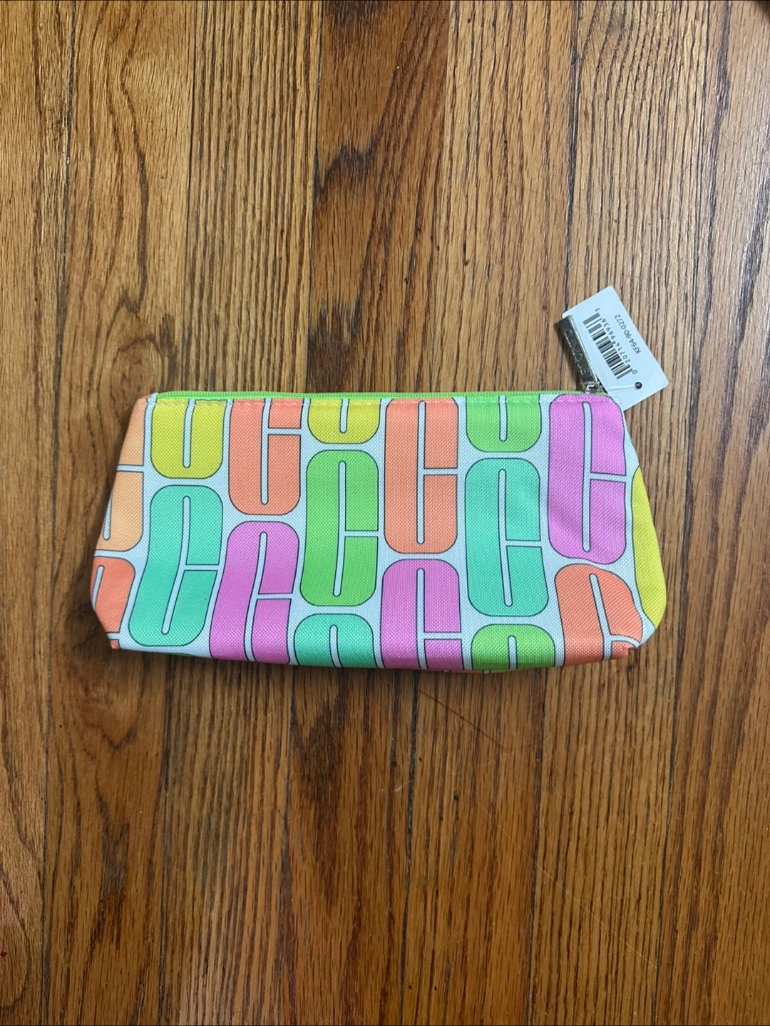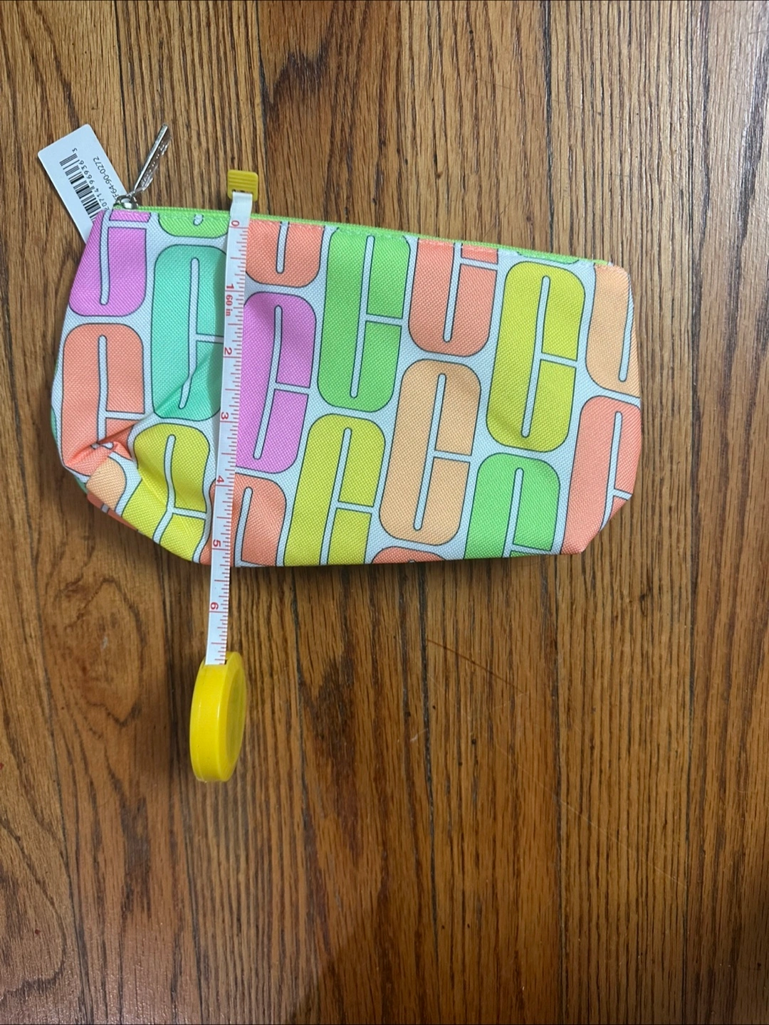 Here's a Clinique cosmetic bag in great condition! It's perfect for storing your makeup or toiletries. It measures approximately 9 inches in length and 4 inches in height