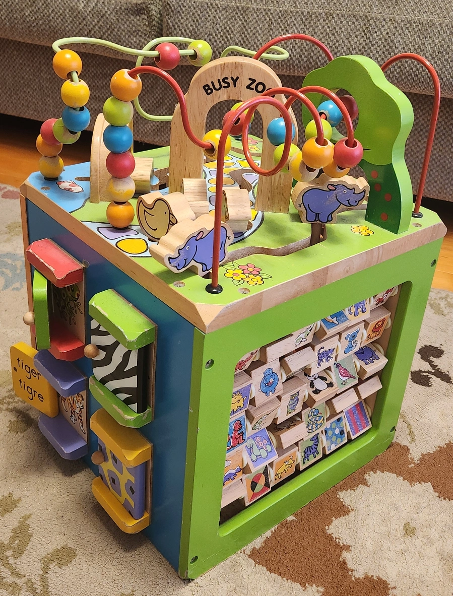 This Busy Zoo activity cube is perfect for keeping little ones entertained! It features a variety of activities including bead mazes, sliding puzzles, and animal-themed blocks. Great for developing fine motor skills and problem-solving abilities