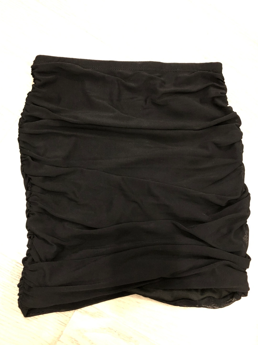 Selling a cute Vamped mini skirt! It's a size XXS and features a stylish ruched design. The skirt is black and in great condition, ready for a new home!