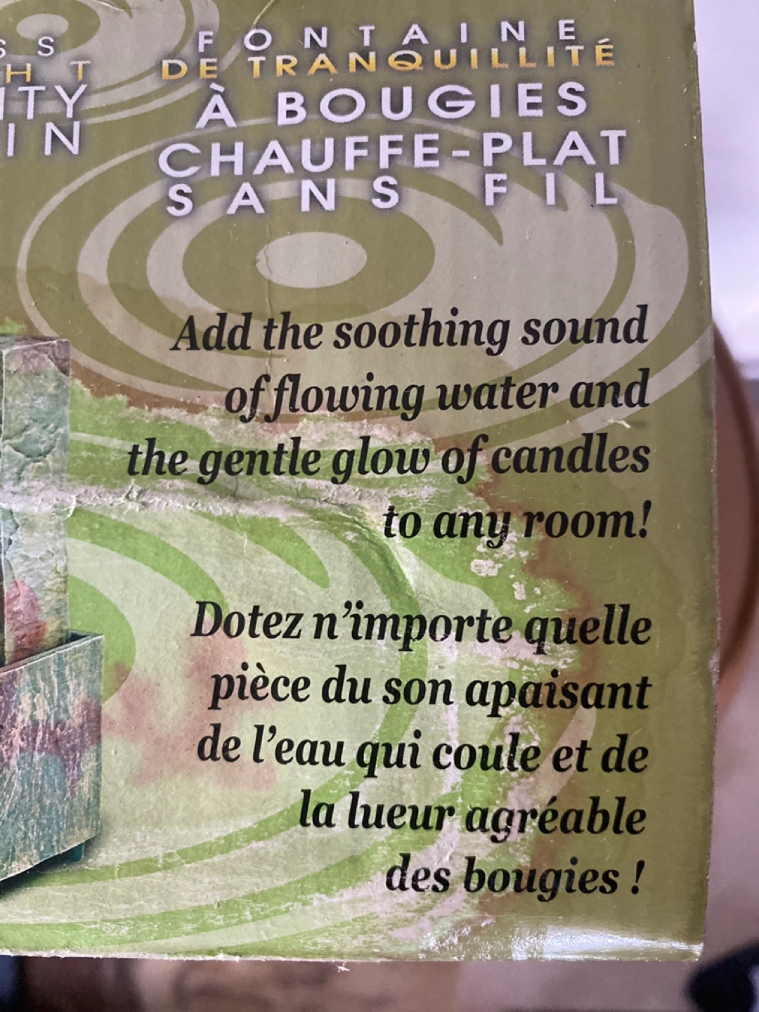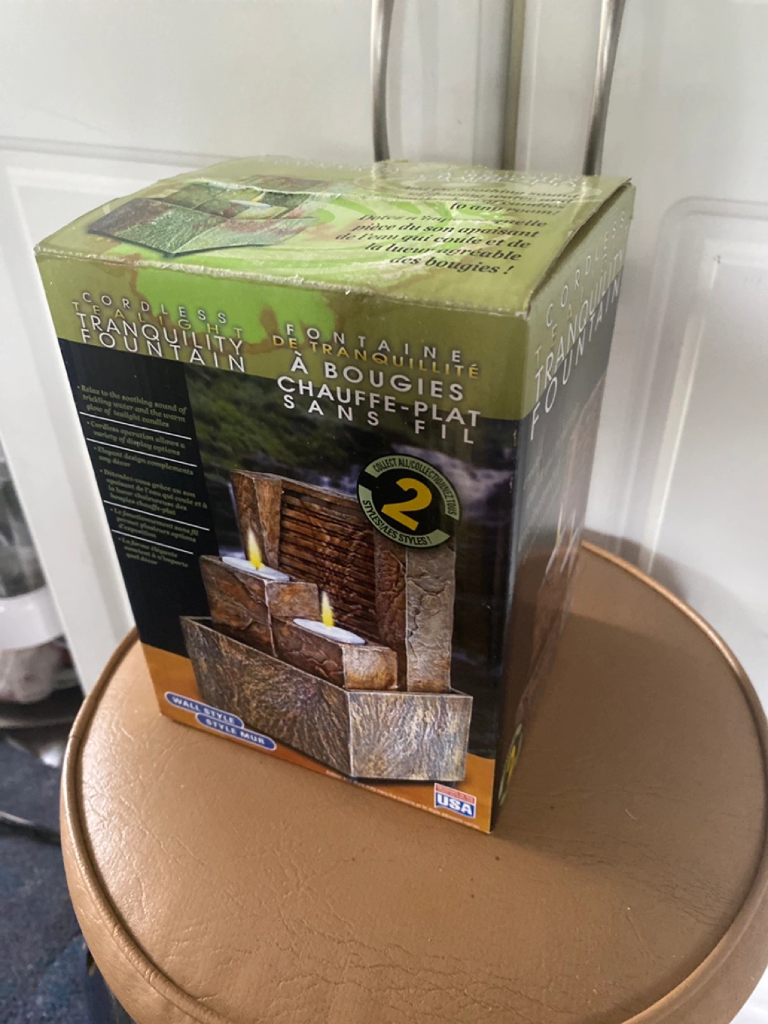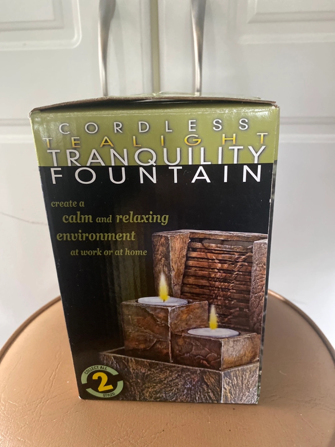 Create a calm and relaxing environment at work or at home with this cordless tea light tranquility fountain! It adds the soothing sound of flowing water and the gentle glow of candles to any room. This is still new in the box!