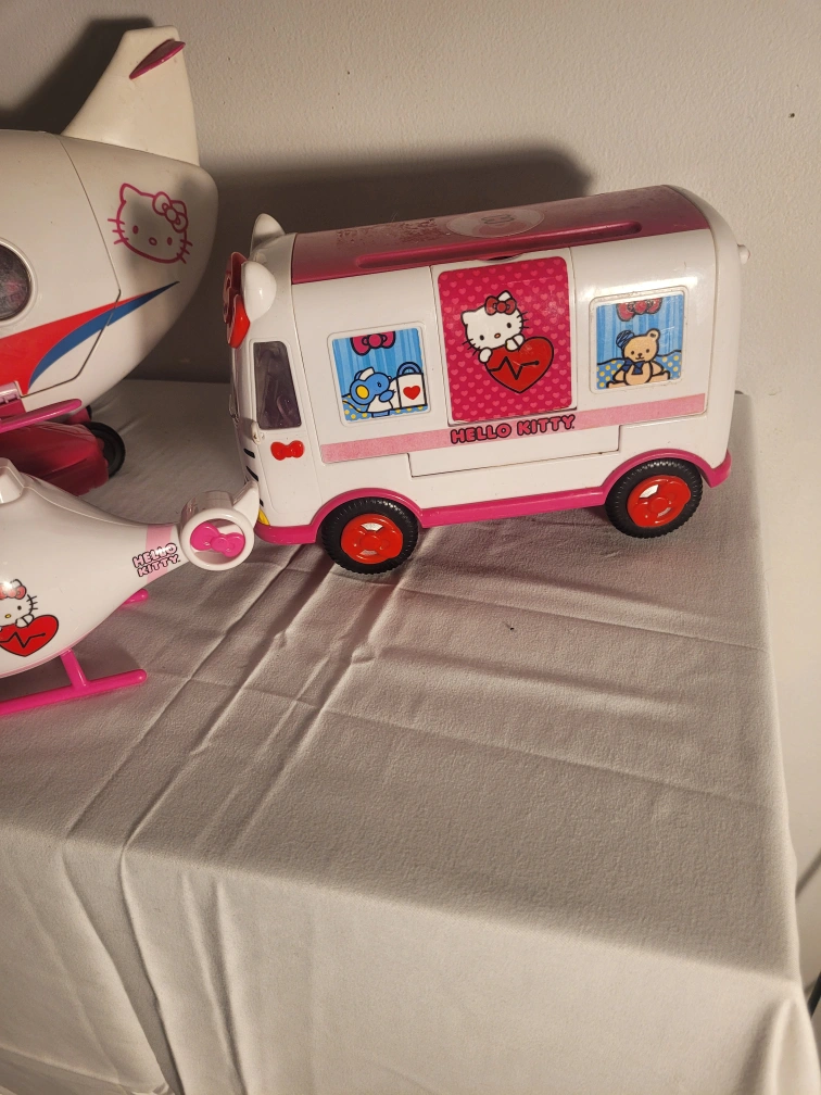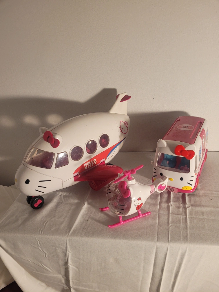 Selling a cute Hello Kitty toy set! Includes an airplane, a helicopter, and a bus. All in good condition and ready for a new home!
