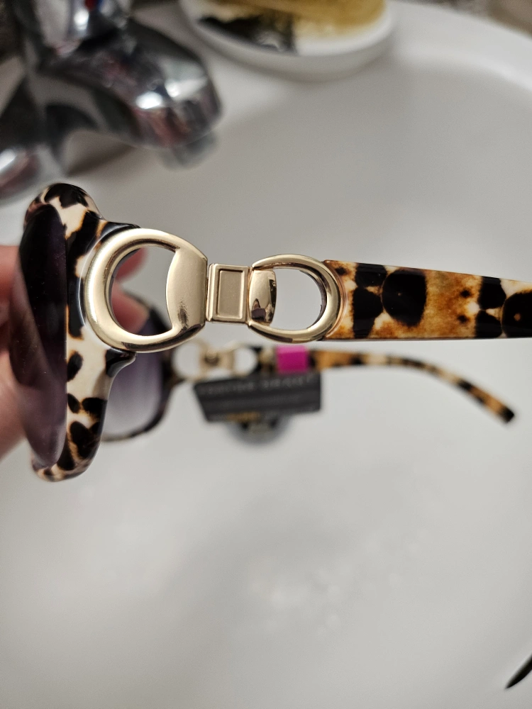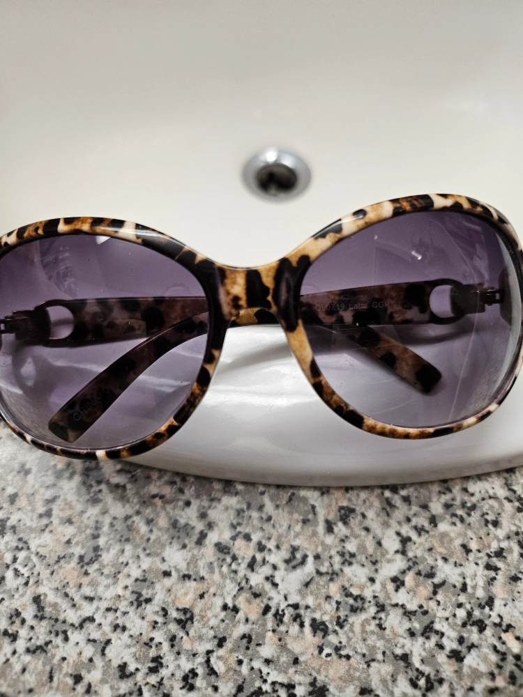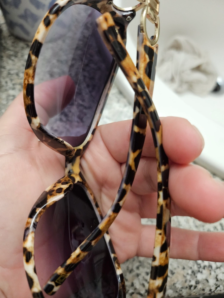 *Animal print, light gold shiny temple detailing, warm brown lenses