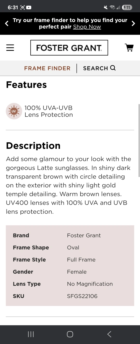 FOSTER GRANT Women's Sunglasses 100% UVA-UVB Protection