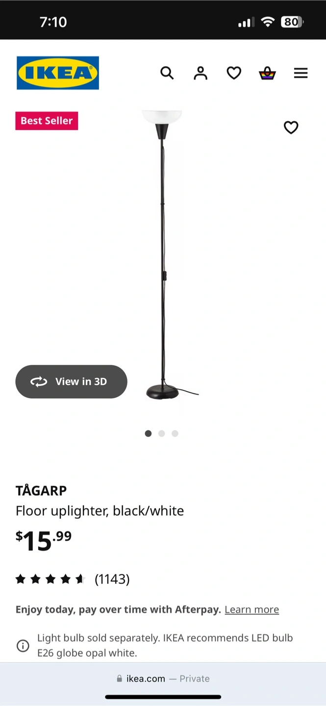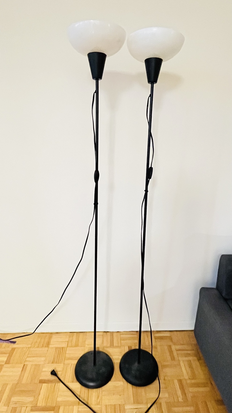 Selling a set of two IKEA TÅGARP floor uplighters in black and white! They're in great condition and ready to brighten up your space. Originally bought for $15.99 each, these lamps provide a nice, ambient light.