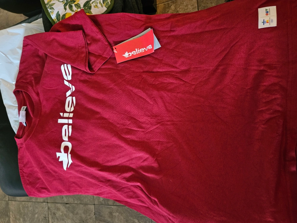 Selling a brand new Believe t-shirt from Hudson's Bay! This shirt is a size large and made of 100% cotton. The color is a nice, deep red. Perfect for everyday wear!