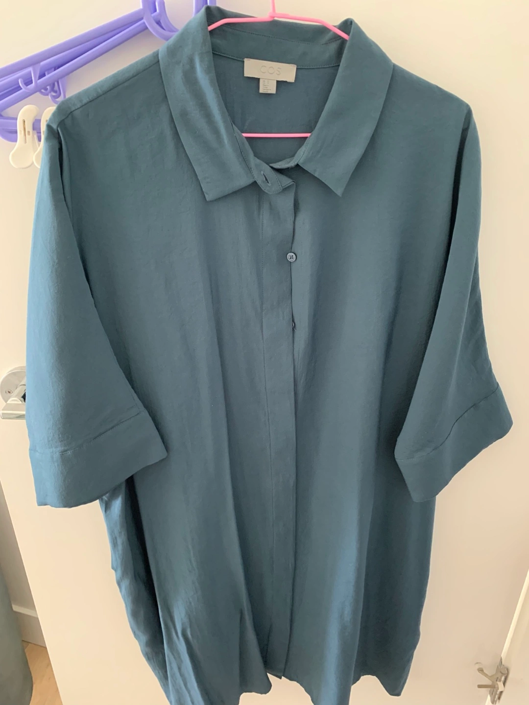 ✅Selling a lovely blue COS dress in size M. It's in great condition and ready for a new home! Perfect for a casual day out or dressed up for an evening occasion. The material feels nice and light, making it super comfortable to wear.