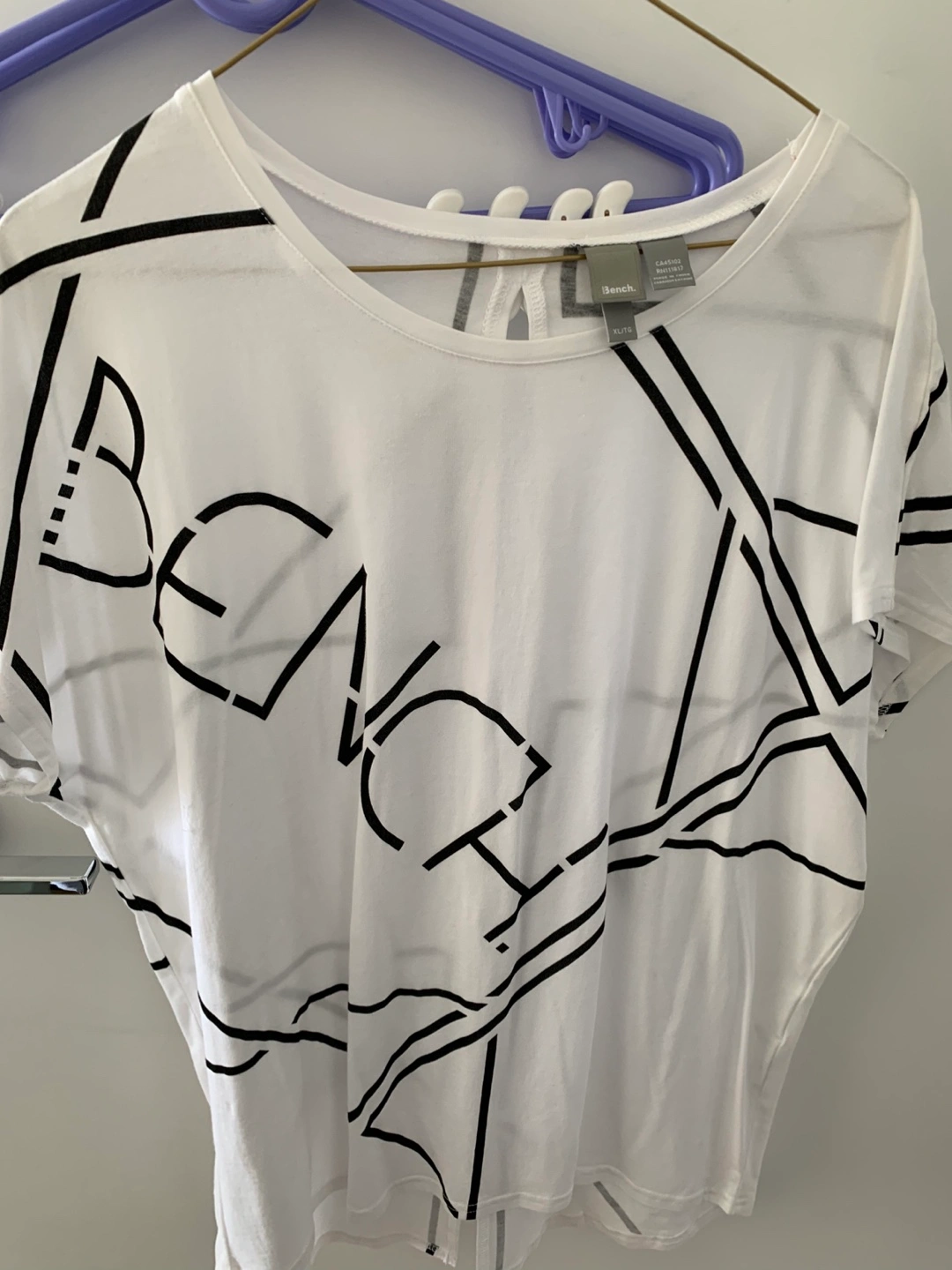 ✅Selling a Bench brand white t-shirt with a black graphic design. It's a size XL and in great condition!