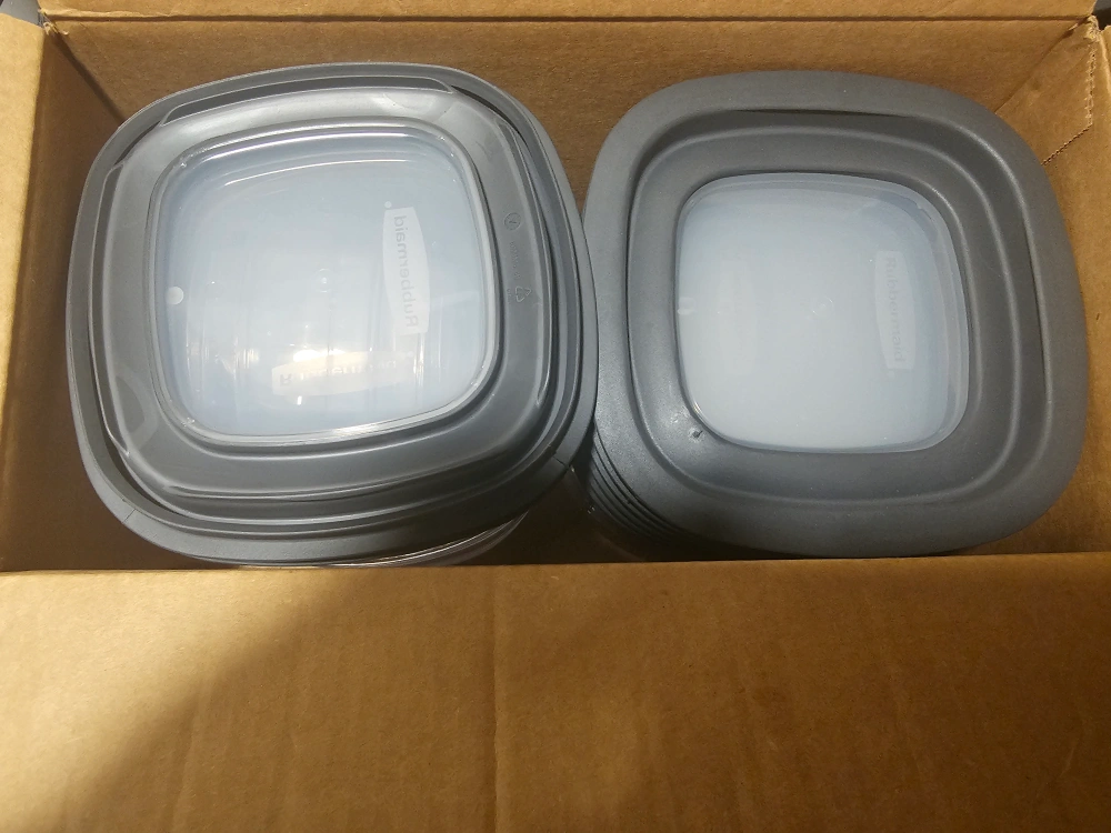 I'm selling a brand new Rubbermaid 28-Piece Food Storage Containers with Snap Bases set! It's great for easy organization and storing leftovers. The containers are dishwasher safe and come in a clear/grey colour. The set is still in its original box!