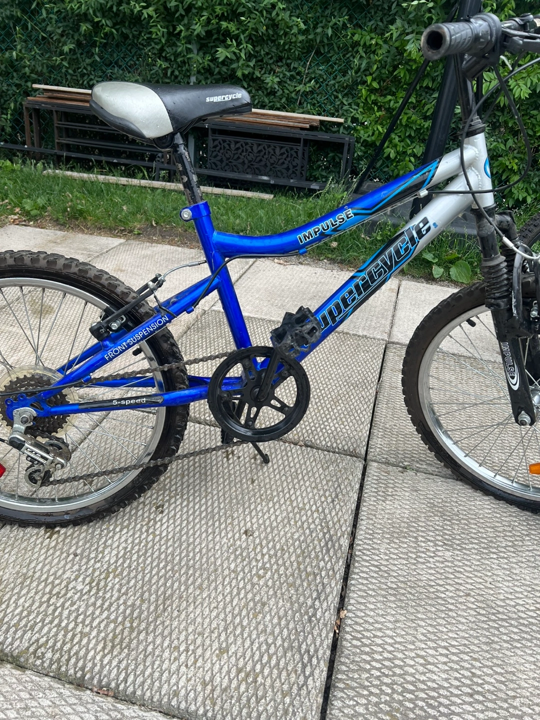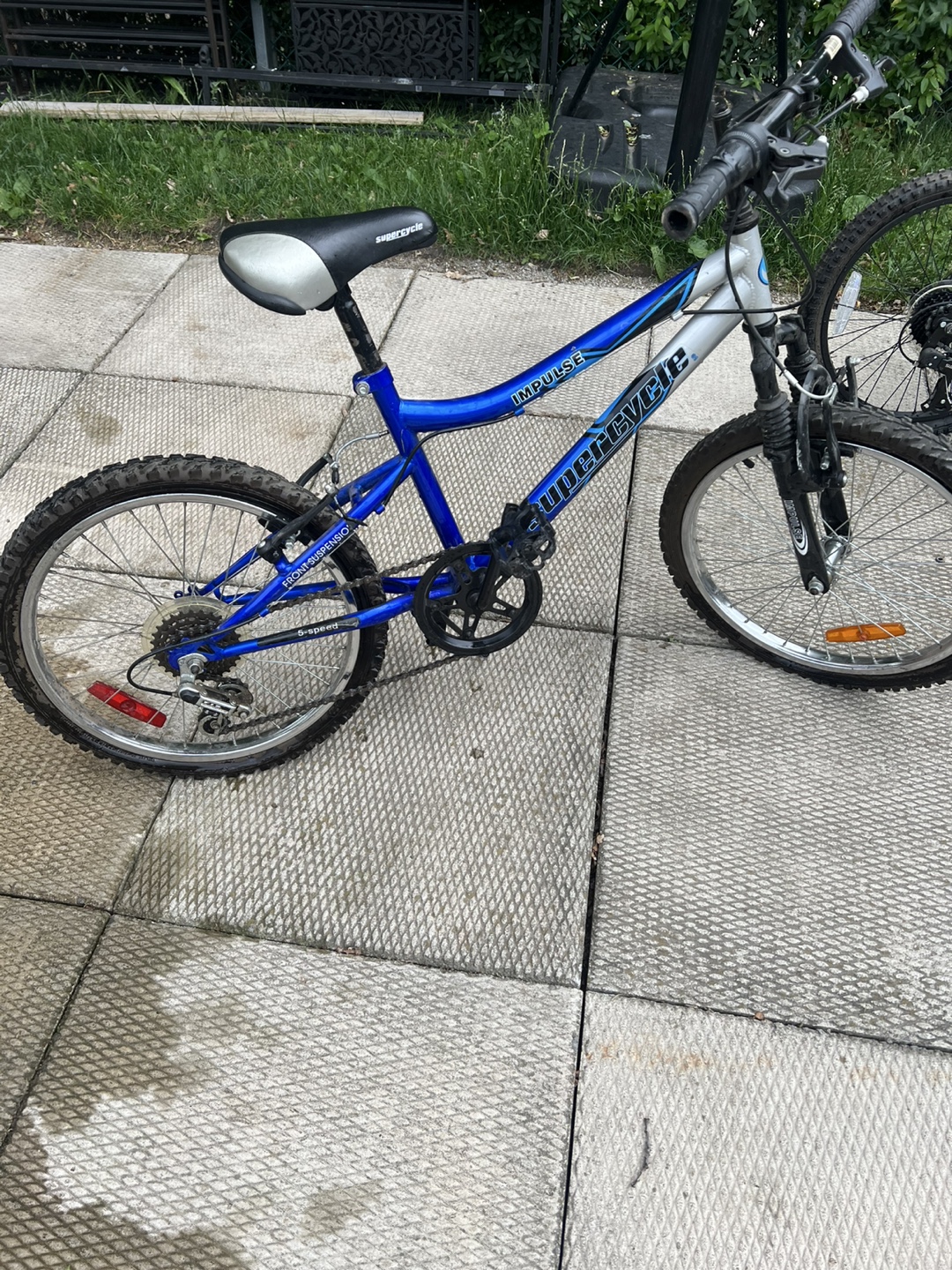 Selling a Supercycle Impulse bike in blue and silver! It's a 5-speed bike with front suspension. Great for getting around town or hitting some trails