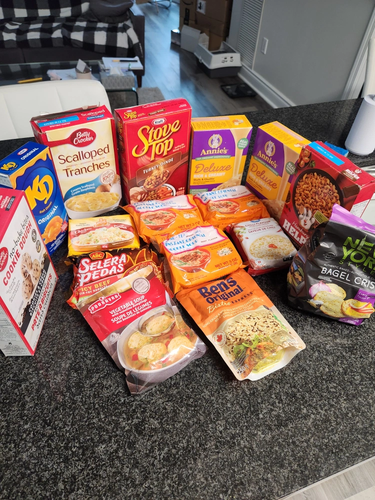 This food can expire, but everything is stored in good condition. Some packages can be damaged (scalloped tranches and stove top)