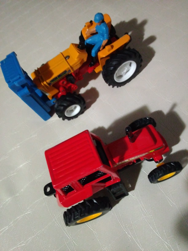 two farm tractors! One is red and the other is yellow. Great for collecting or kids who love tractors and farm equipment
