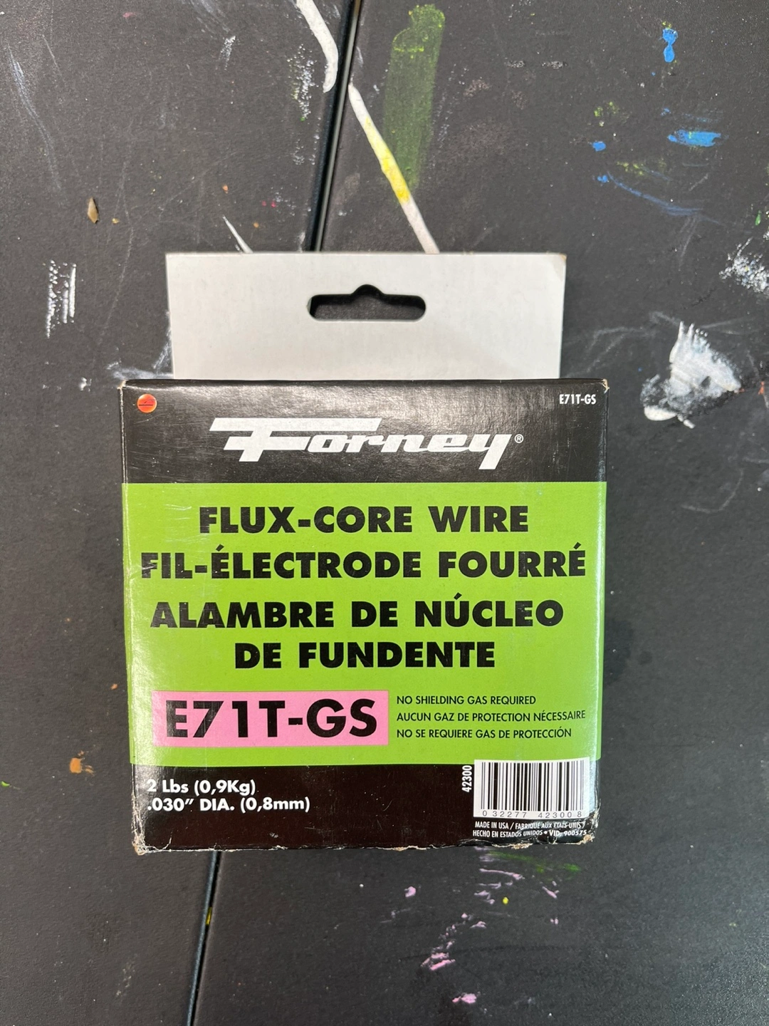 Selling a 2 lb spool of Forney E71T-GS flux-core wire. It's designed for welding and doesn't require shielding gas. The wire has a diameter of 0.030 inches (0.8mm).