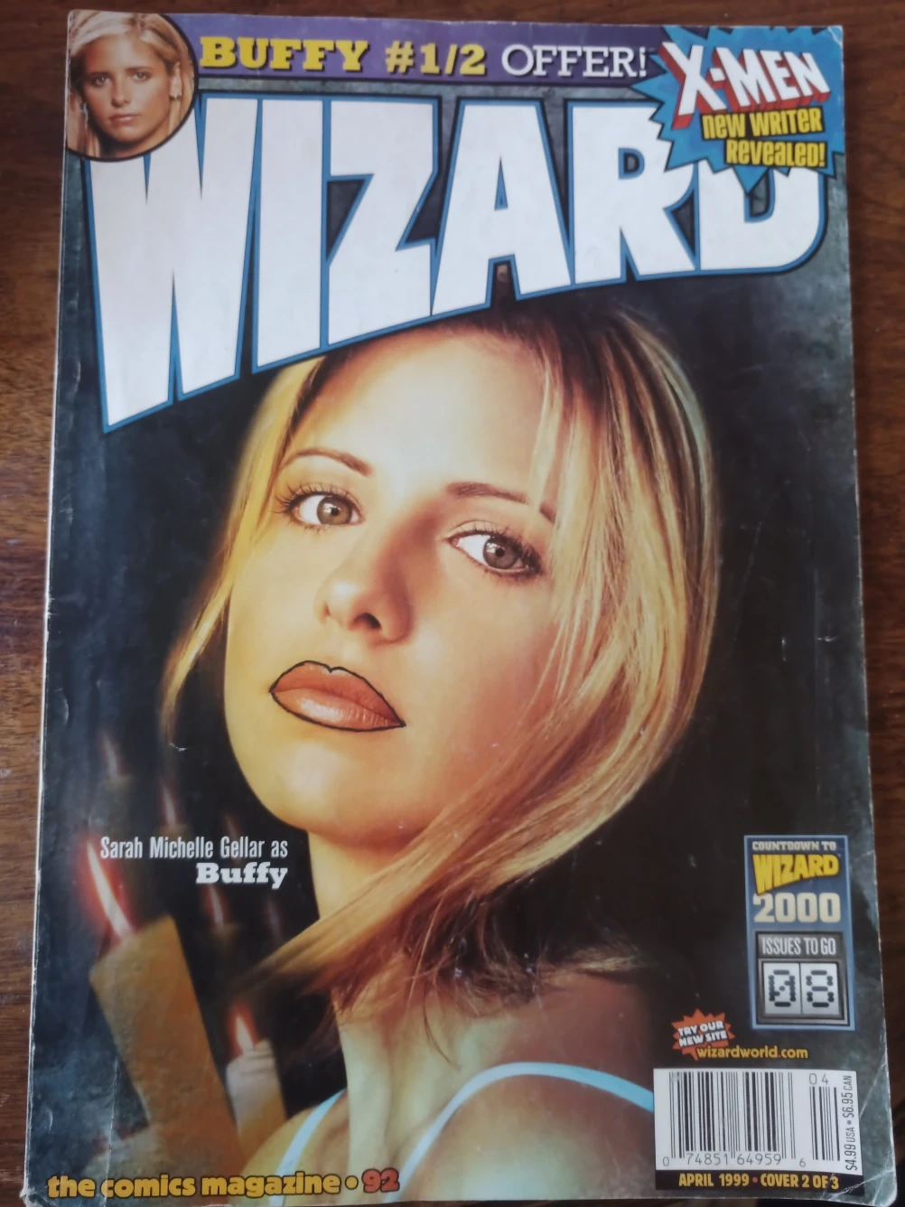 (Collectors item) Selling a copy of Wizard: The Comics Magazine from April 1999. This issue features a Buffy the Vampire Slayer cover and includes articles on various comics and pop culture topics from the time. Great for collectors!