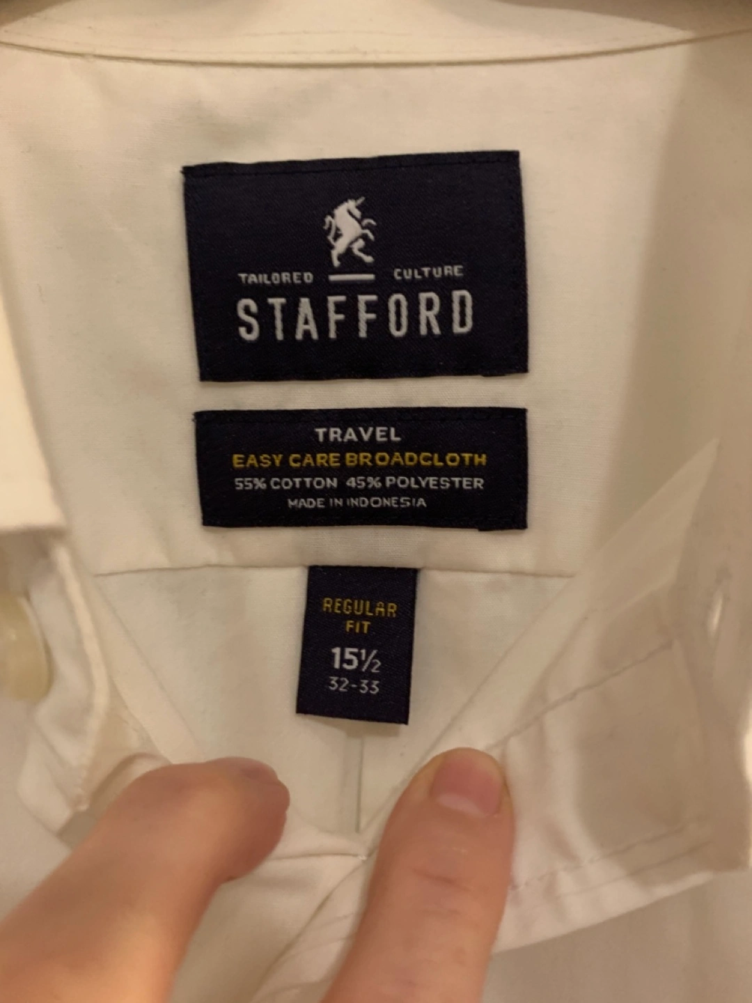 Like New White broadcloth Stafford dress shirt. Regular fit with a 15 1/2 inch neck.