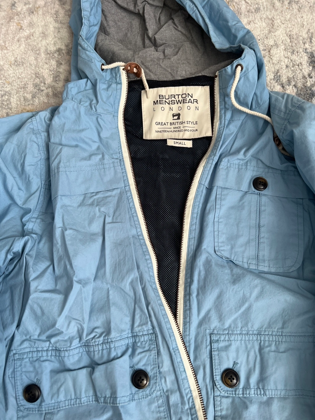 Selling a Burton Menswear London jacket in a lovely light blue colour. It's a size small and in great condition! Perfect for those cooler days