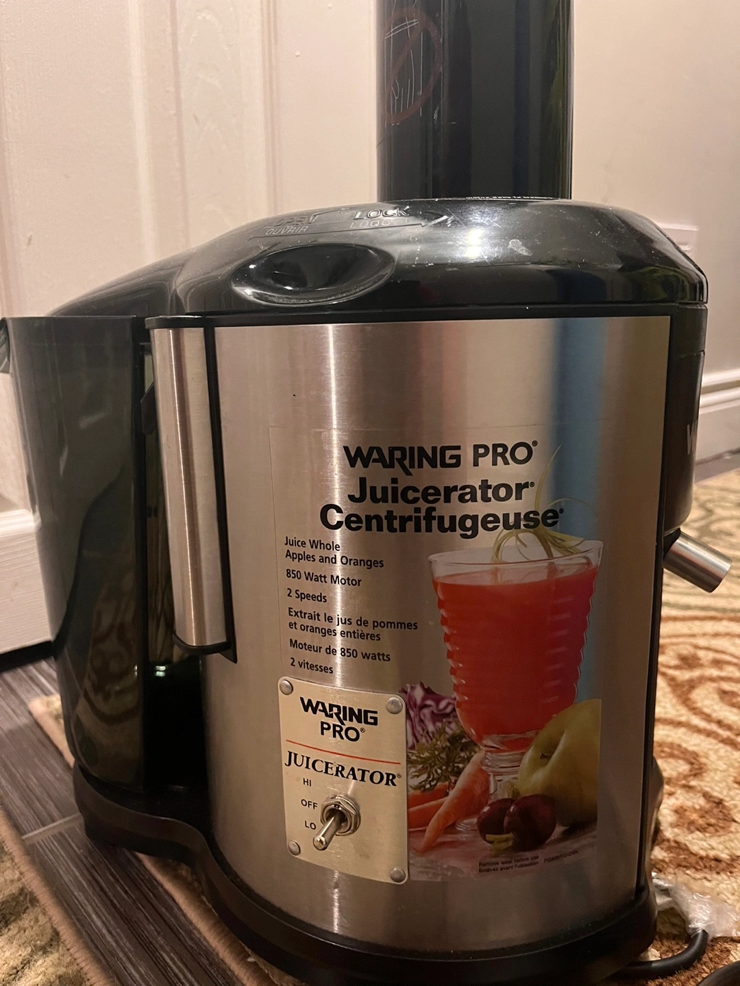 Giving away a Waring Pro Juicerator Centrifugeuse. Not currently turning on however I don’t know why. It can juice whole apples and oranges with its 850-watt motor and 2 speeds! Perfect for making fresh juice at home