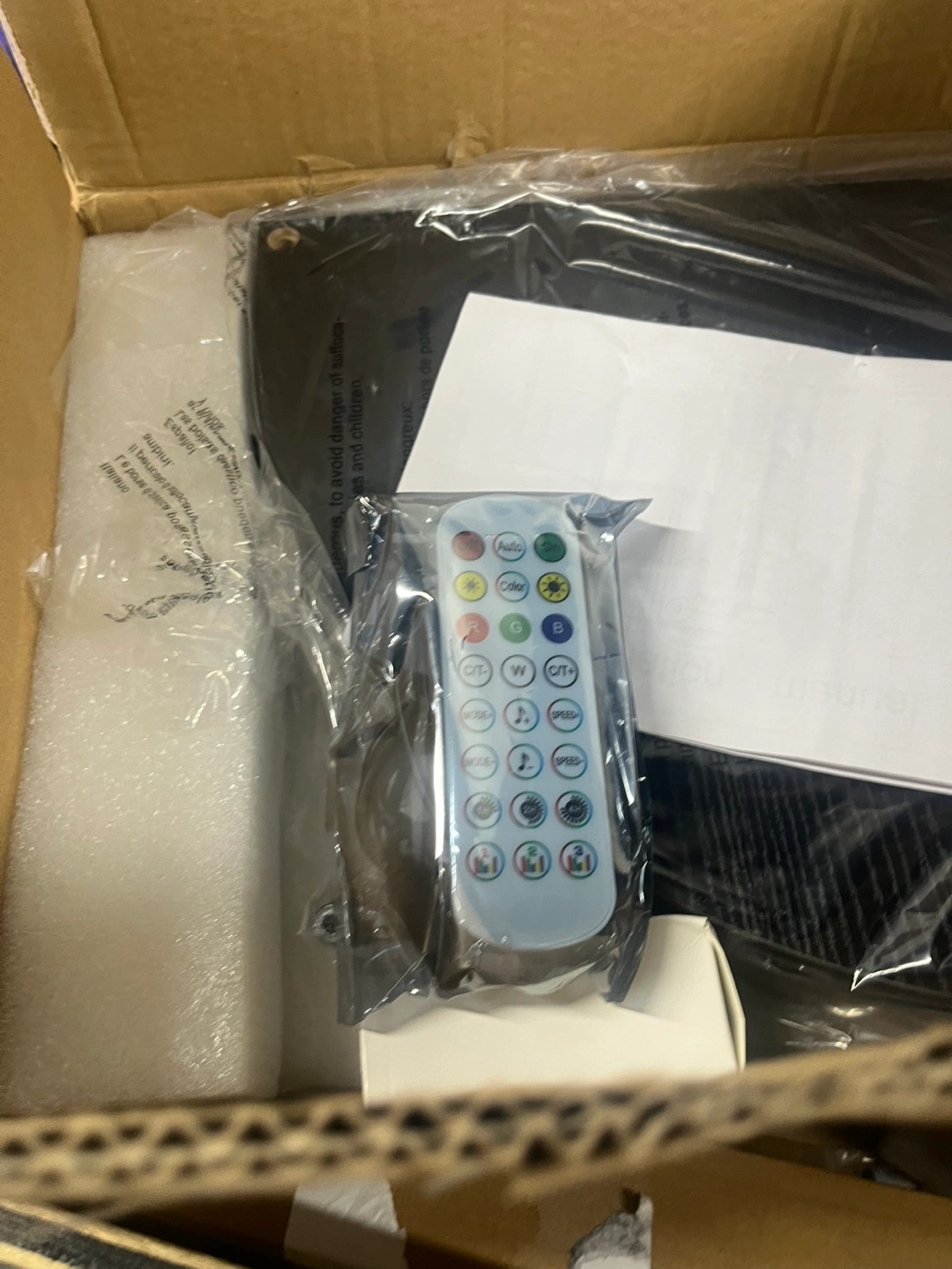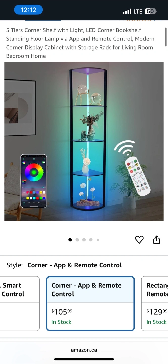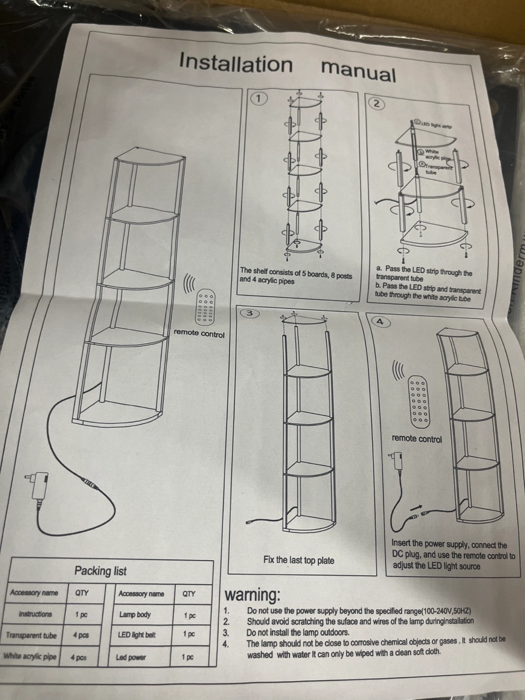142Selling a brand new, still-in-box 5-tier corner shelf with LED lighting! This modern corner bookshelf is perfect for adding a touch of style to your living room, bedroom, or any space in your home. The shelf comes with a remote control for adjusting the LED light colours and settings. Installation manual and all accessories are included