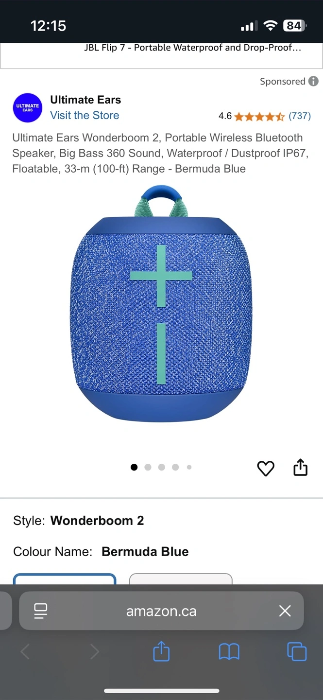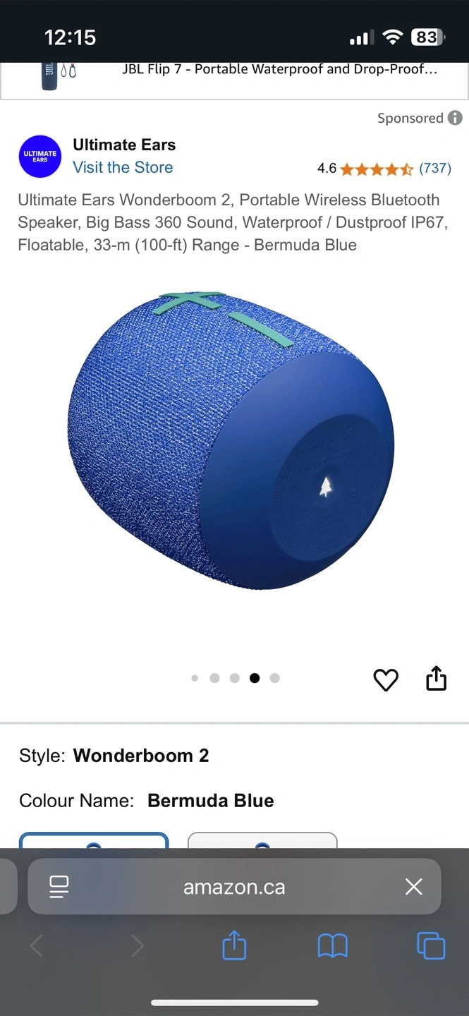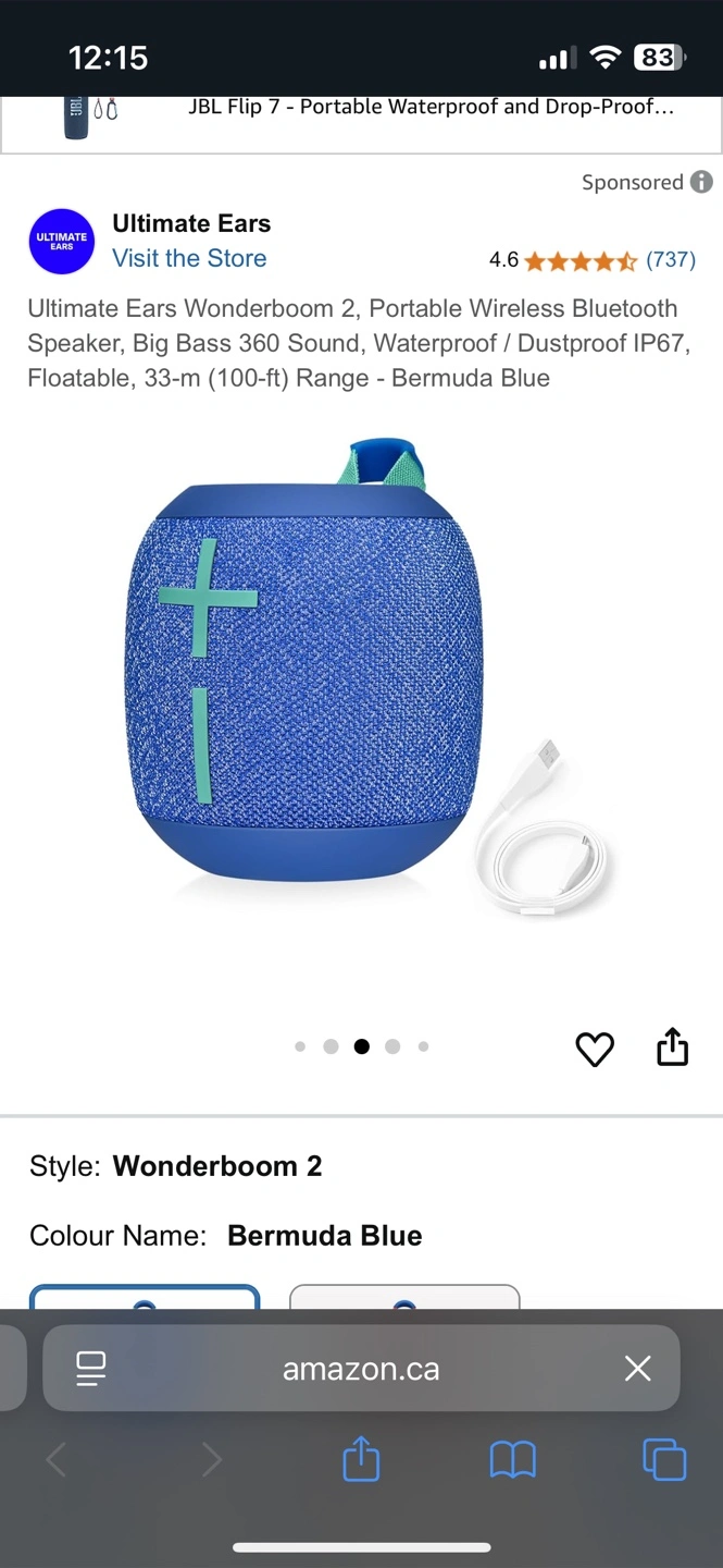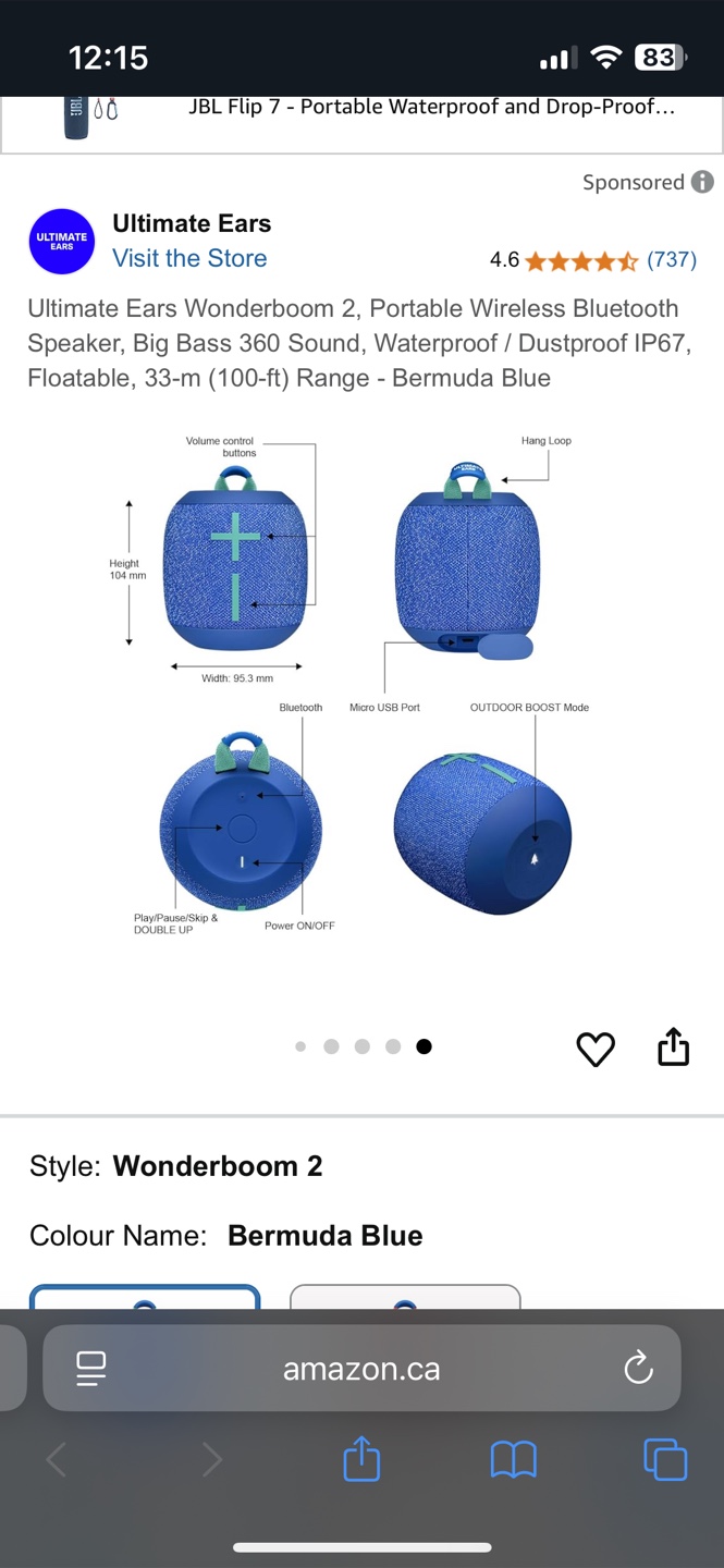 Selling an Ultimate Ears Wonderboom 2 in Bermuda Blue! It's a portable wireless Bluetooth speaker with big bass 360 sound. It's also waterproof, dustproof, and floatable, with a 33-m (100-ft) range