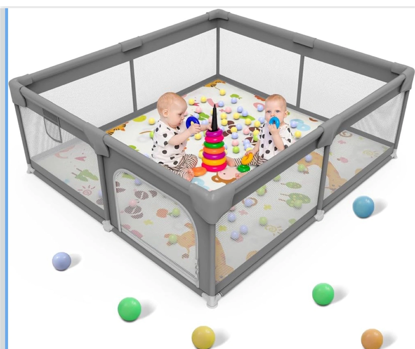 Selling a baby playpen in great condition! It's perfect for keeping your little ones safe while they play. The playpen is grey and features a mesh design for visibility and ventilation. It's easy to set up and provides a secure space for your child to explore and have fun