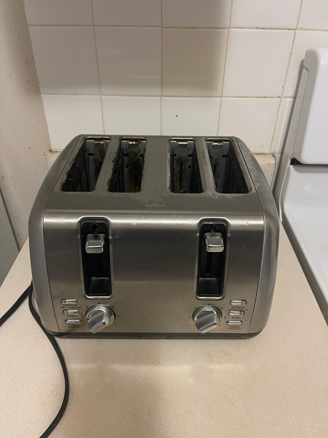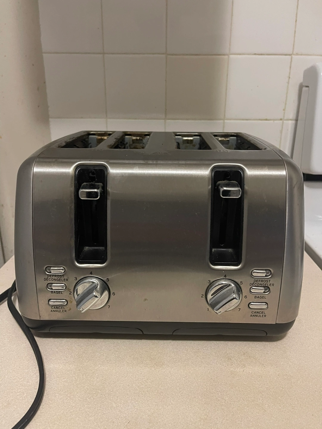 90Selling a four-slice toaster. It's in good working condition and ready for a new home. Perfect for making toast for the whole family!