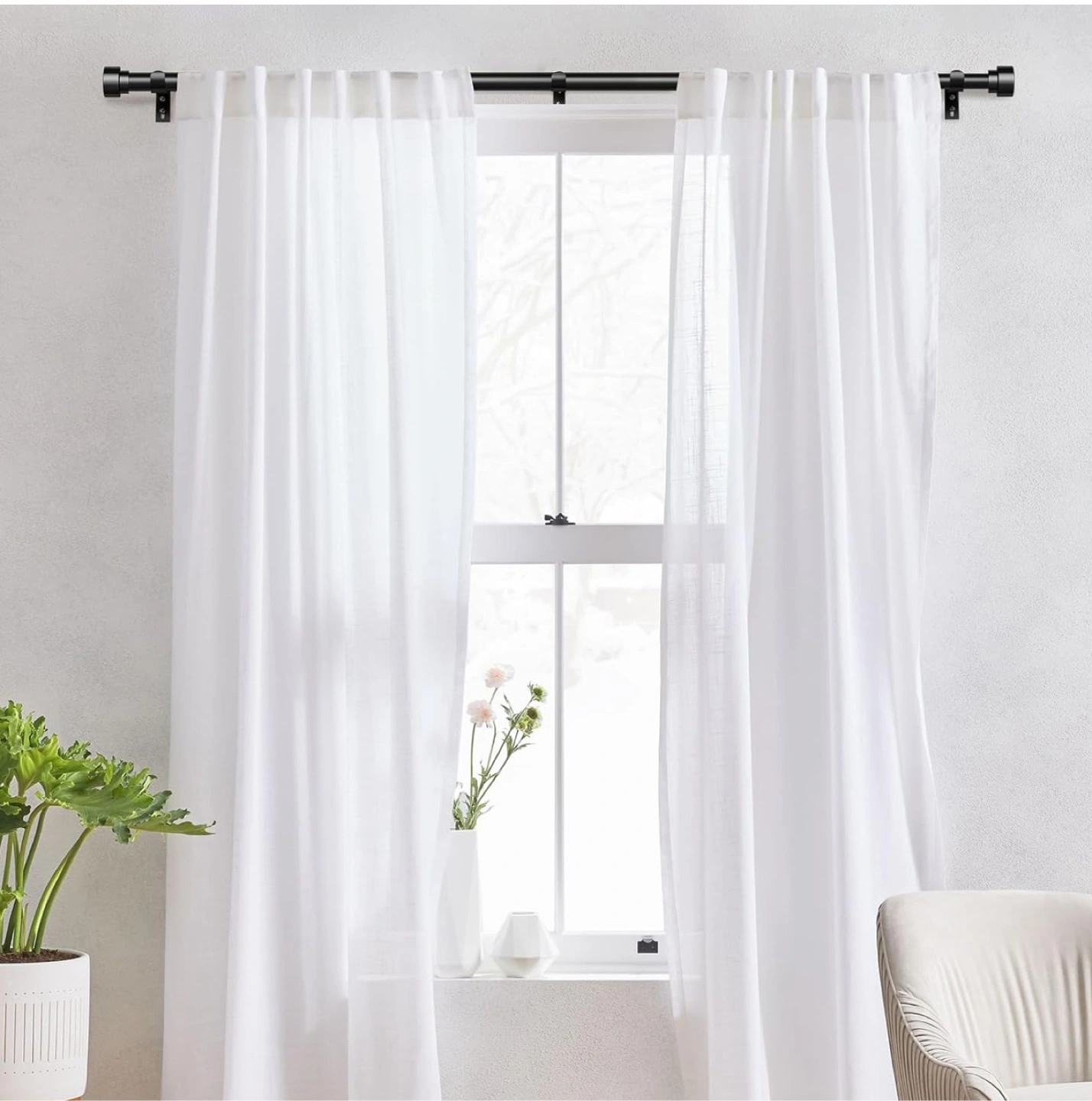Heavy Duty Curtain Rods for Windows 66 to 120 Inch, 1 Inch Adjustable Black Curtain Rod Set with Easy Installation