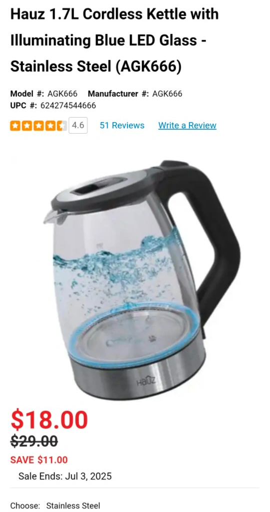 247Selling a Hauz 1.7L cordless kettle. It has some signs of use on the inside, but it still works great! Originally price is $18.