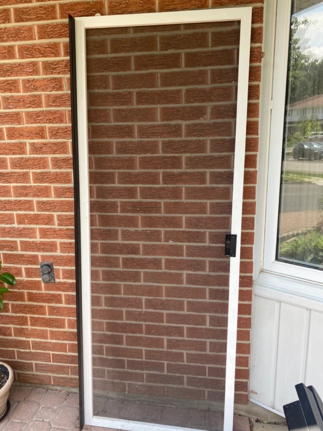 62Selling a screen door with a white frame (sliding doors) . It's in perfect condition and ready to be installed. Perfect for keeping bugs out while letting fresh air in! Size- 30 inch X 80 inch
