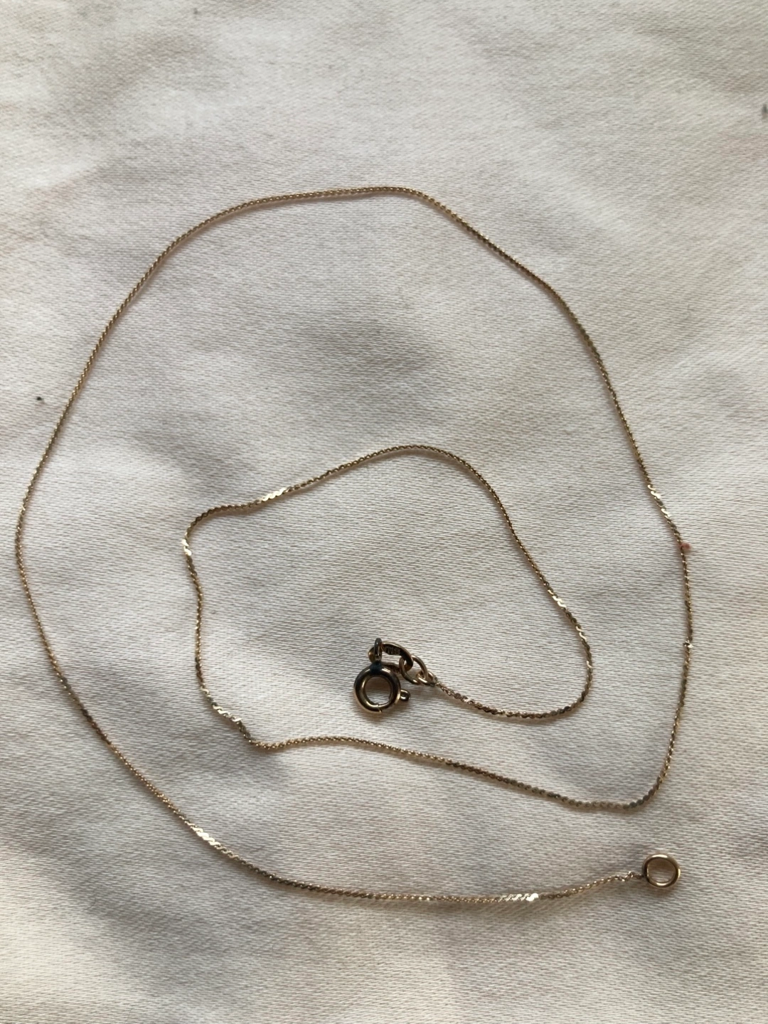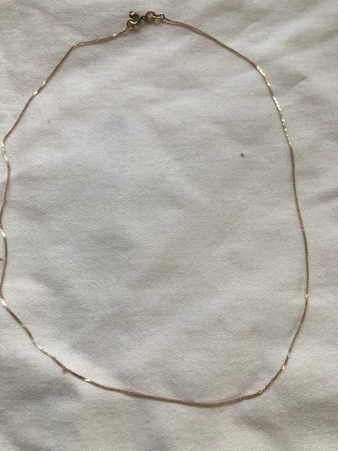 delicate vintage serpentine 10k gold necklace. in new condition. stamped 10k