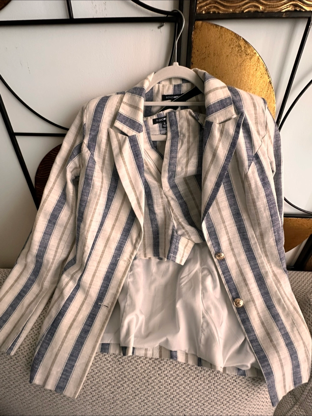 Selling a cute Fashion Nova linen blazer and shorts set! It’s a size small and features a stylish striped pattern. Perfect for adding a chic touch to your wardrobe!