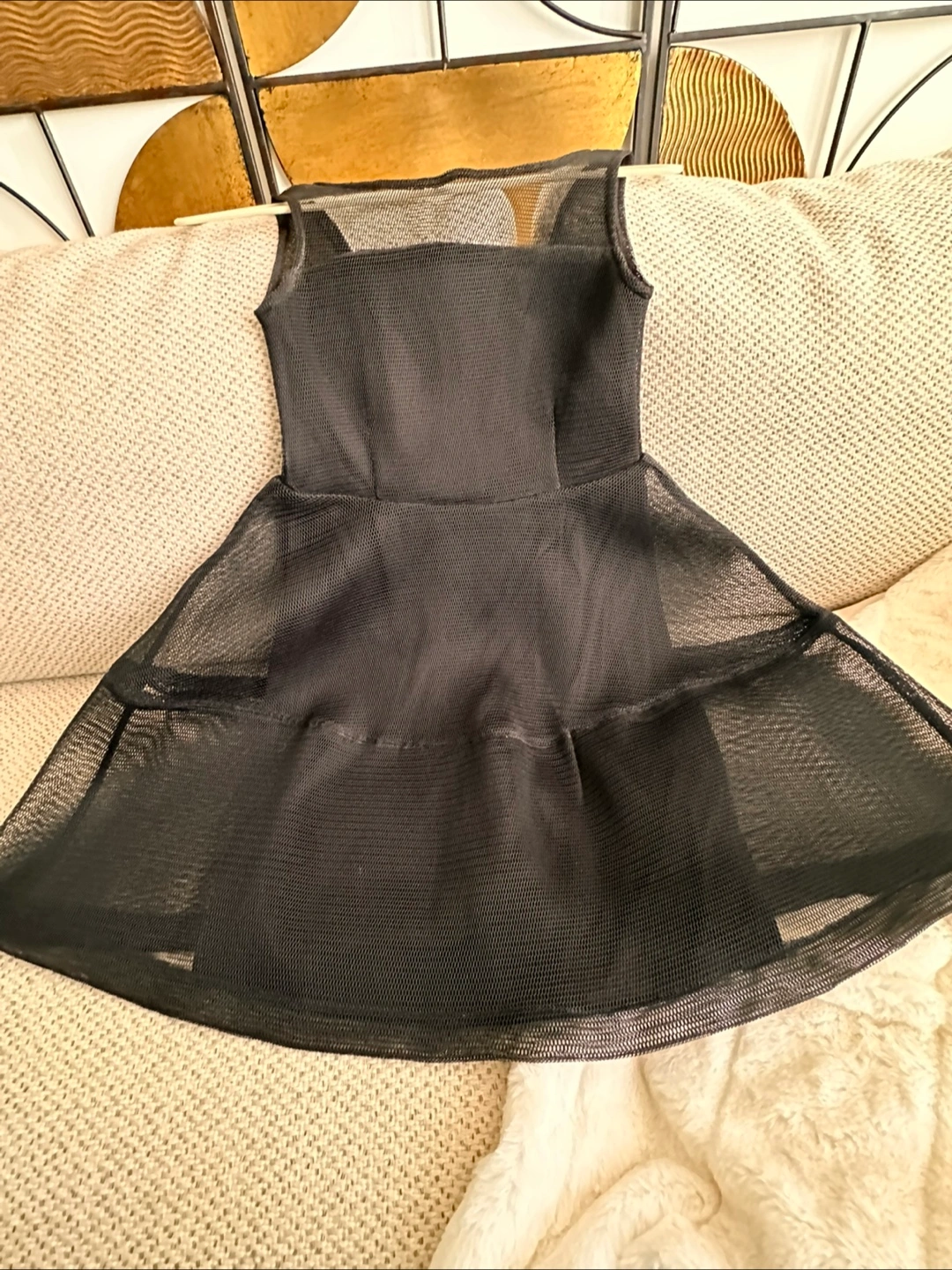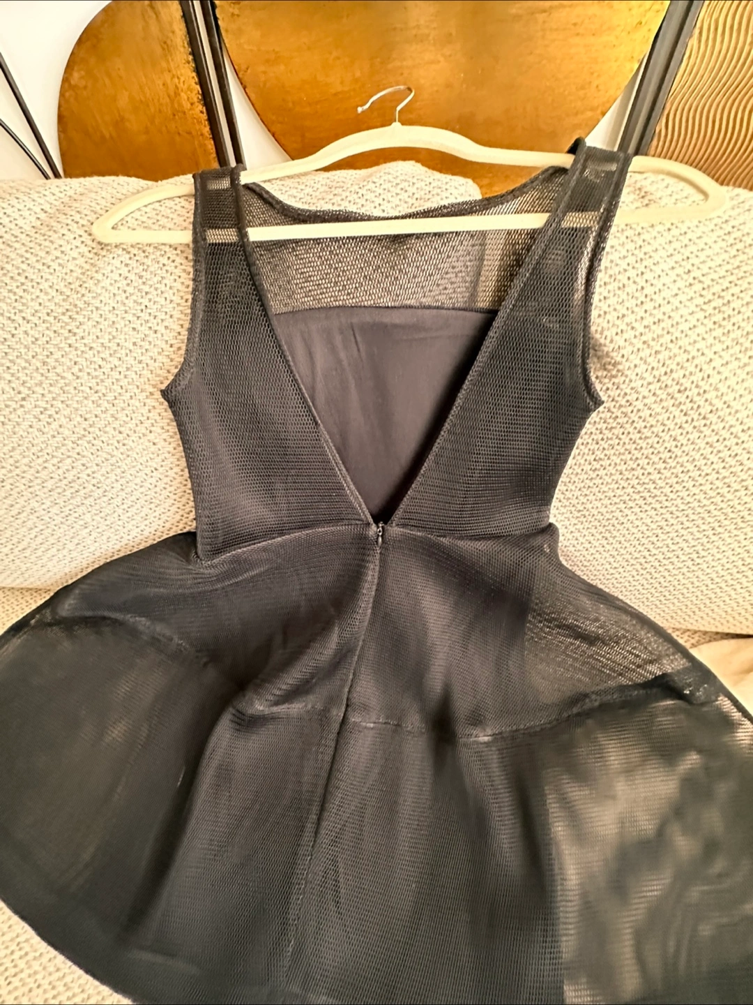Eyelet Mesh Overlay Black Cocktail Dress, vintage, S