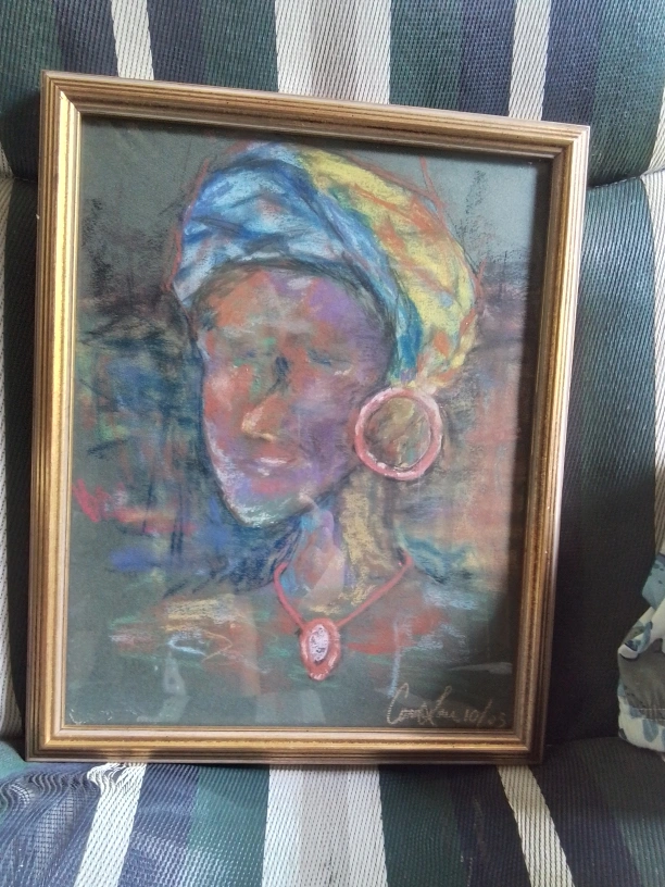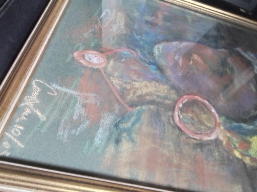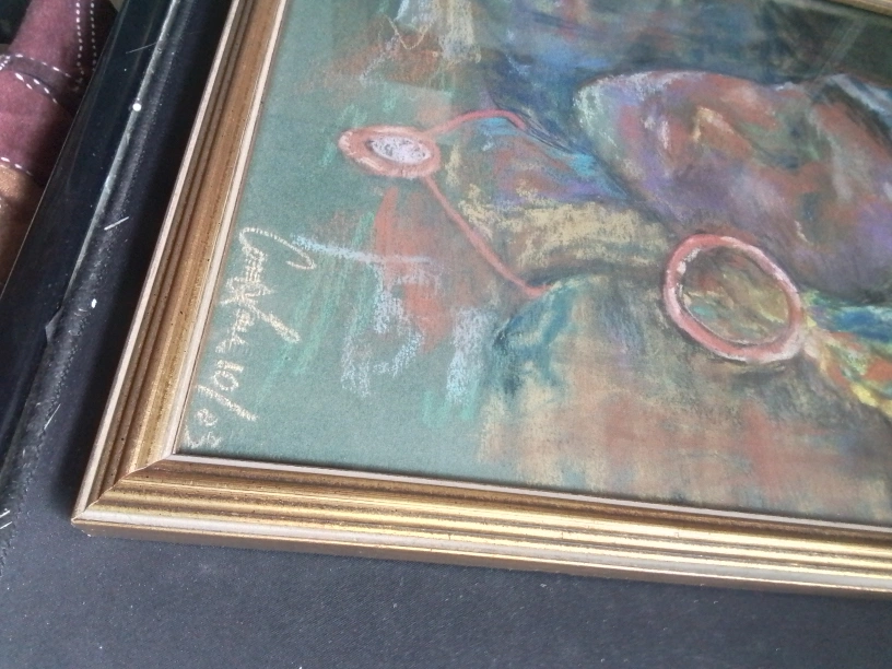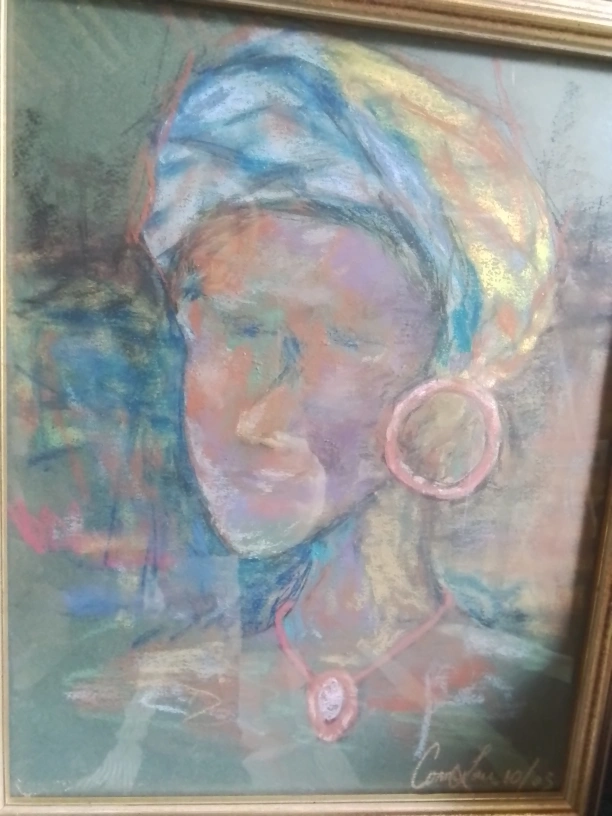 114American Charcoal on Board Signed Comolous 10/03 Charcoal on board, framed. This artwork features dynamic strokes and a blend of vivid colors, including green, blue, red, and yellow, against a predominantly charcoal background. Signed 'Comolous 10/03' on bottom right corner. 34 cm x 26 cm (13 1/2" x 10 1/4"), F: 39 cm x 30 cm (15 1/4" x 11 3/4") Estimate 150.00 - 300.00 USD Country of Origin: USA This striking American charcoal on board, signed by Comolous in October 2003, captures a vibrant portrait with rich colors and expressive strokes. The artwork is framed and ready to hang, bringing a touch of artistic flair to any room. This is a used piece. P.S. If the ad is still up, yes, it’s still available! Yonge Street and Steeles Avenue
