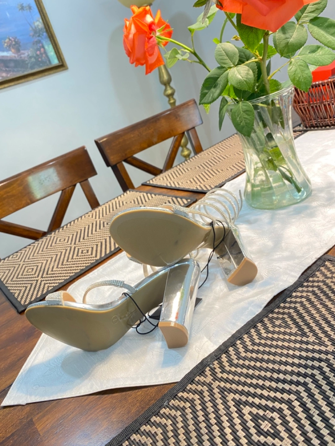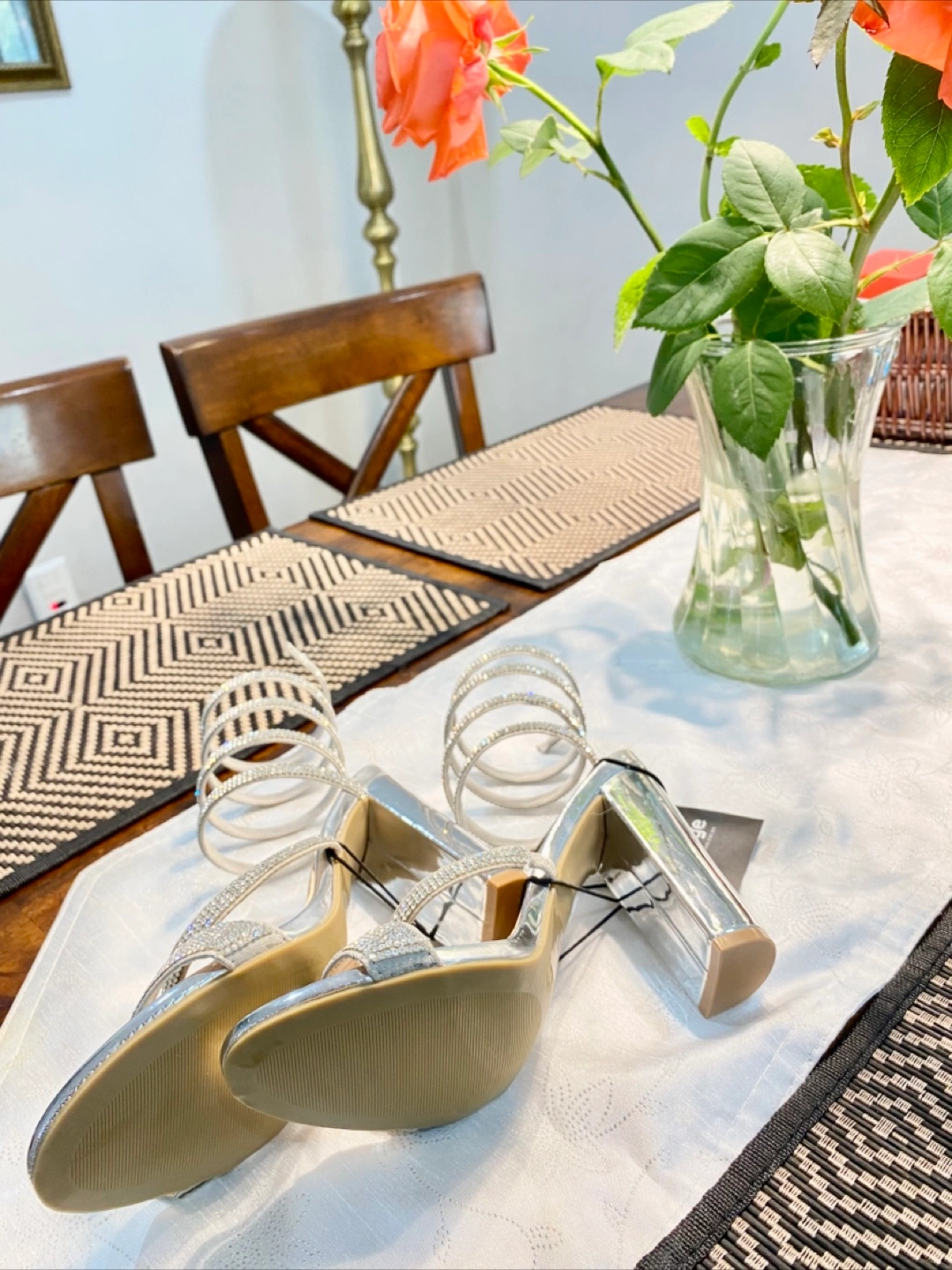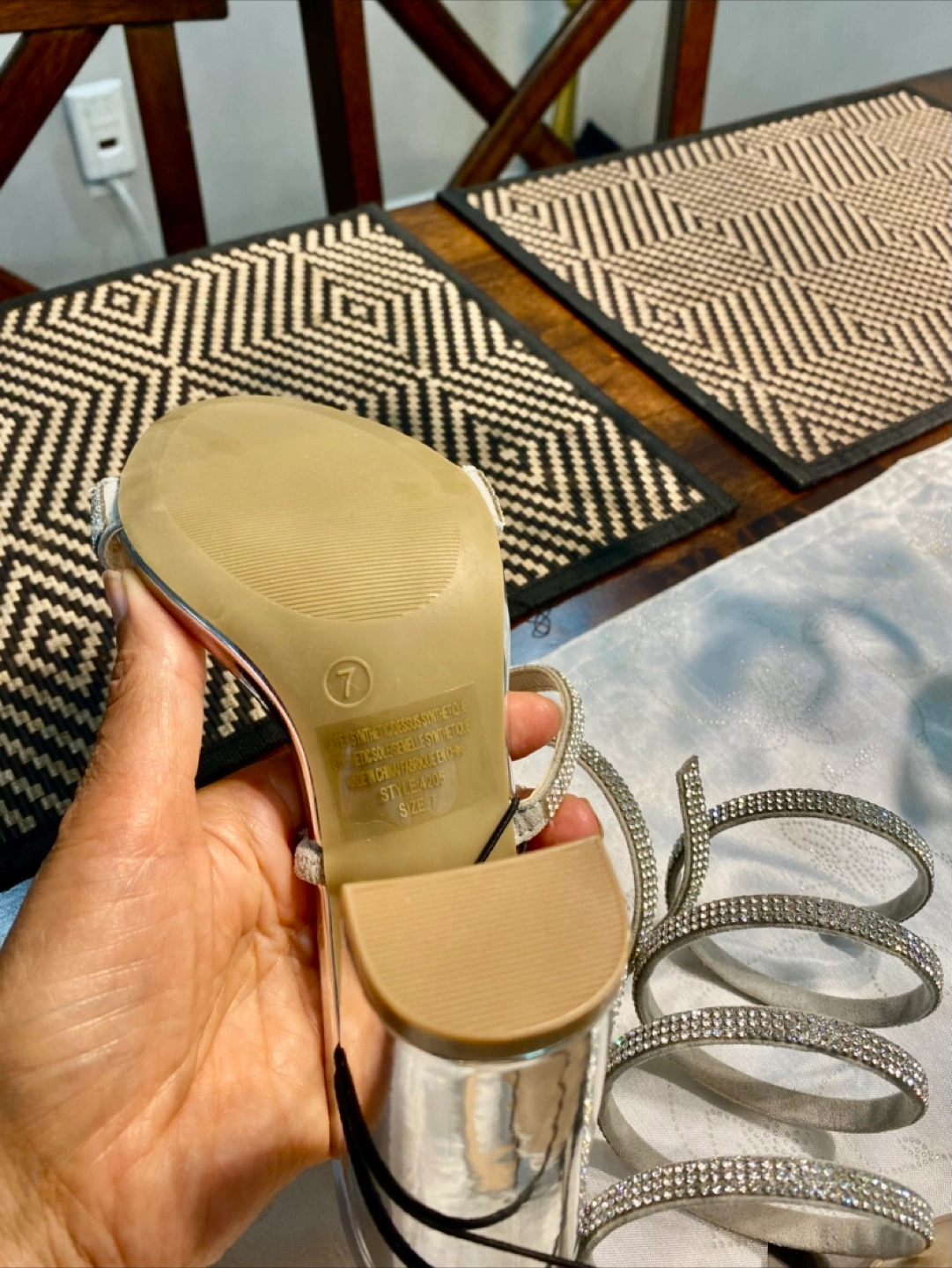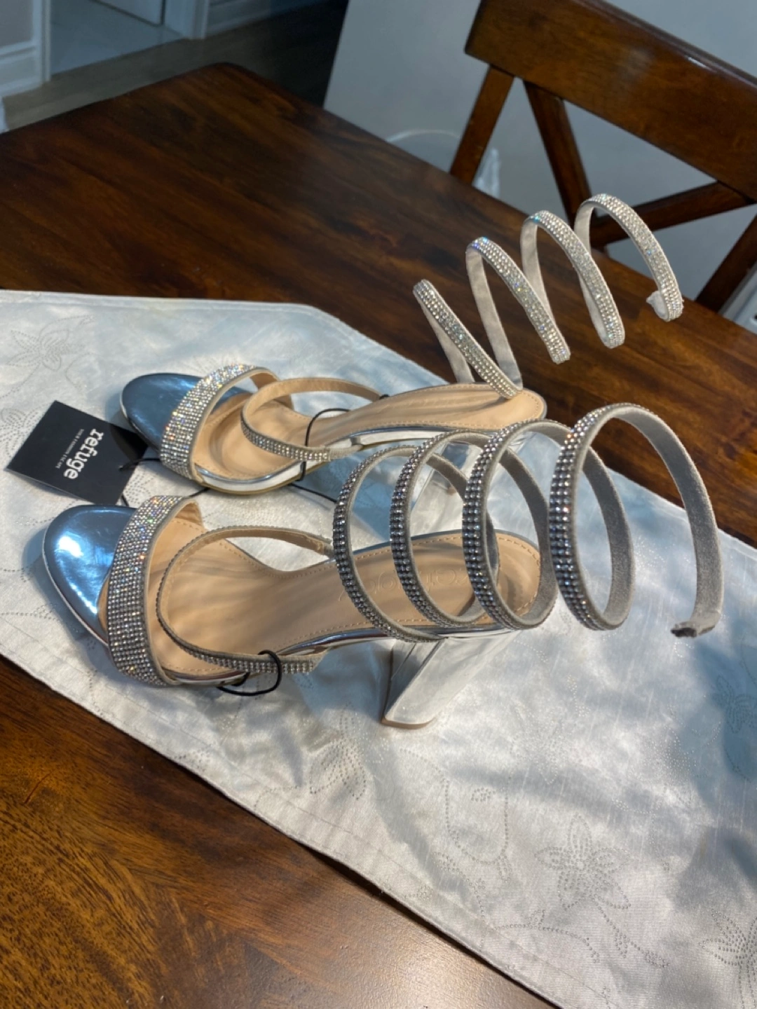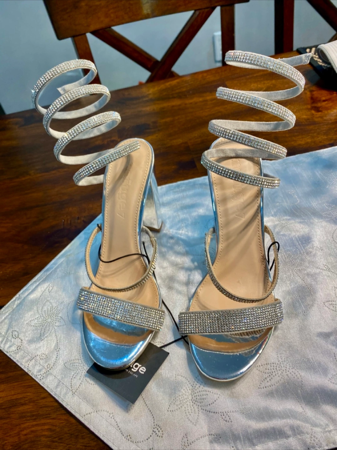 These silver heels have a unique spiral design and are perfect for dressing up an outfit. They're in great condition and ready for a new home